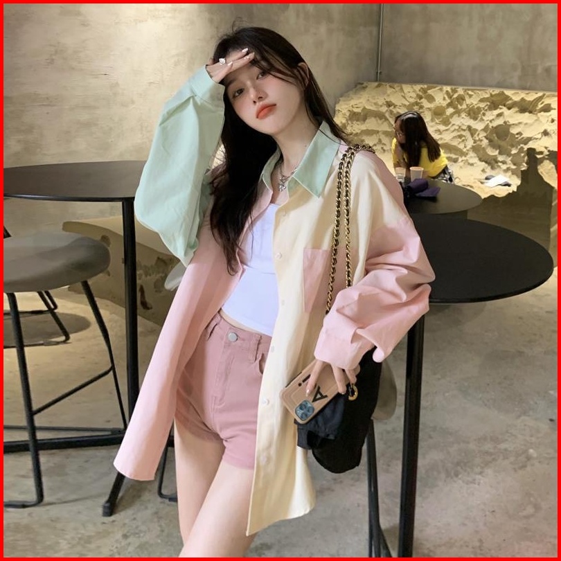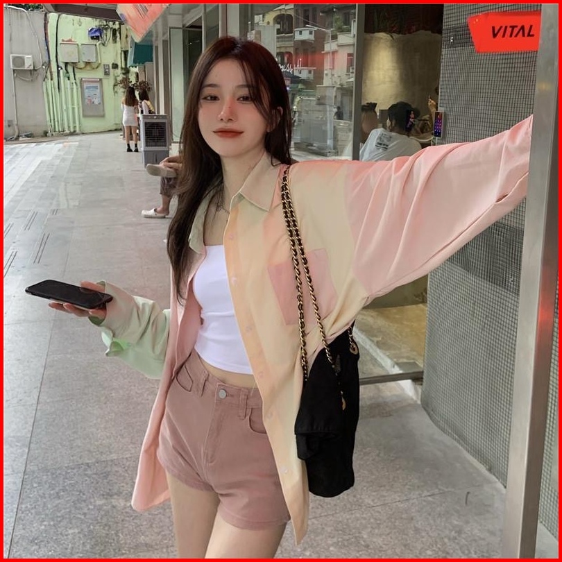 Yuruma Kemeja Wanita Yang Serasi Dengan Warna Kardigan Tabir Surya Lengan Panjang Longgar Mid-length Kecil Segar