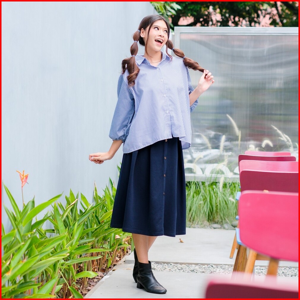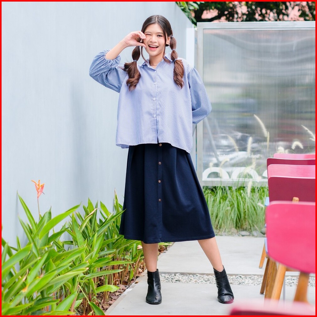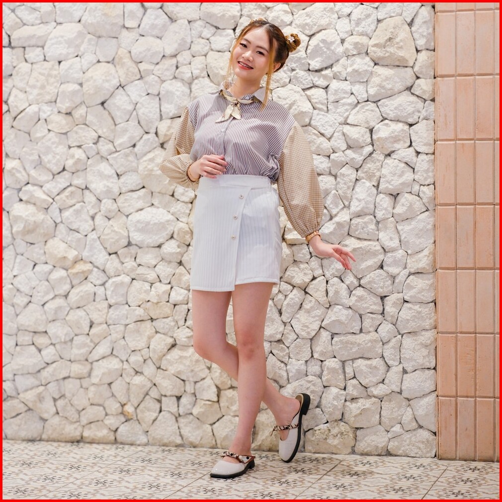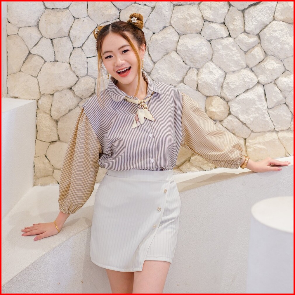 Yoenik Apparel Bae Mix Tops Kemeja Wanita Kemeja Motif Atasan Wanita Stripe