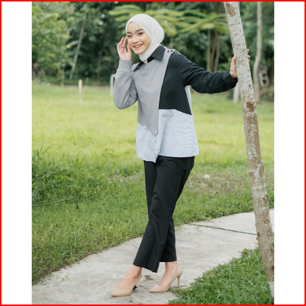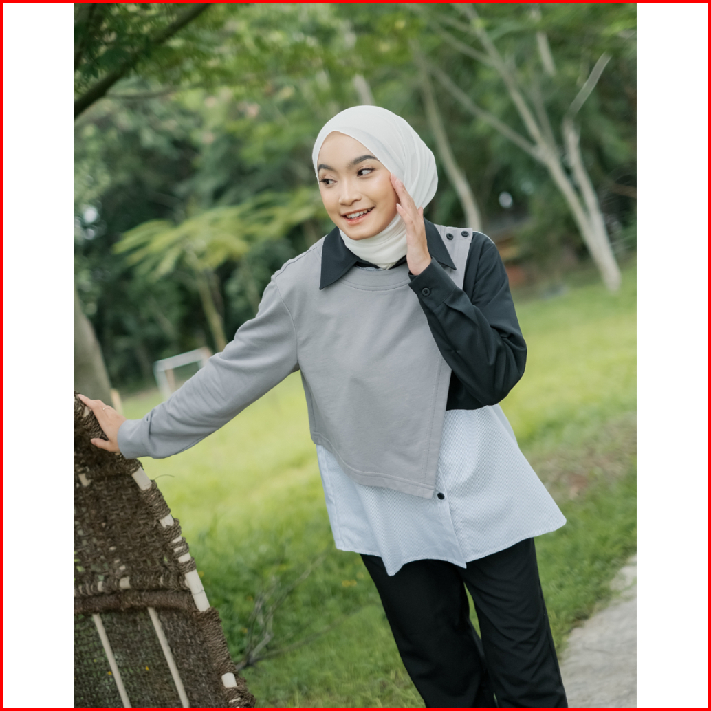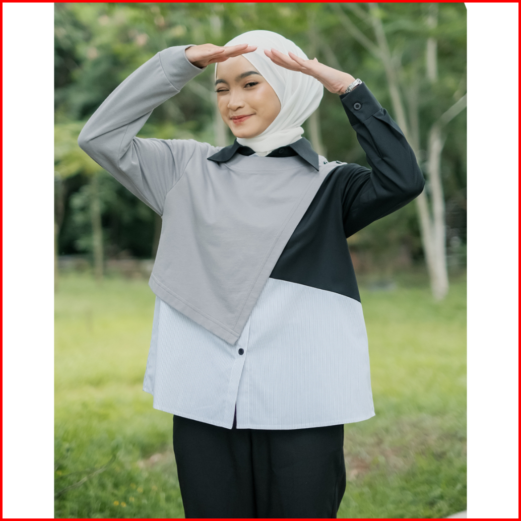 Omara Carmia Combination Shirt Kemeja Wanita - Magnolia Collection