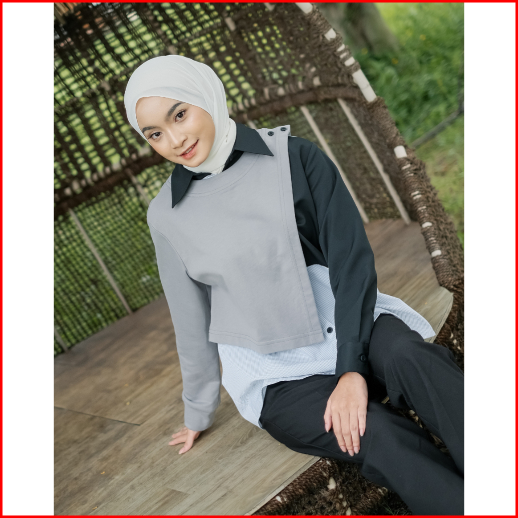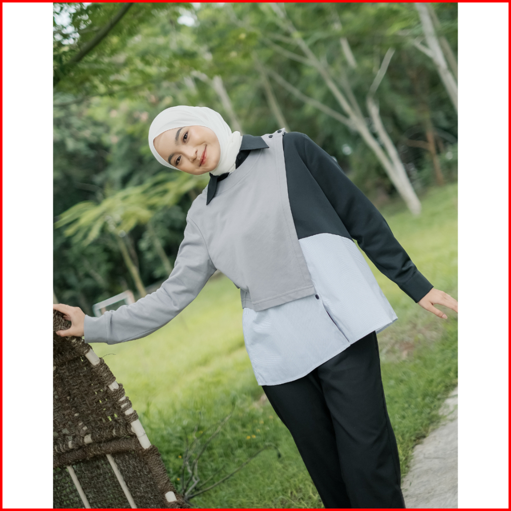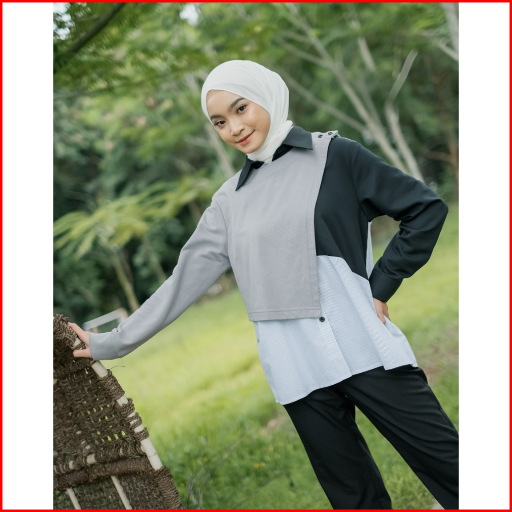 Omara Carmia Combination Shirt Kemeja Wanita - Magnolia Collection