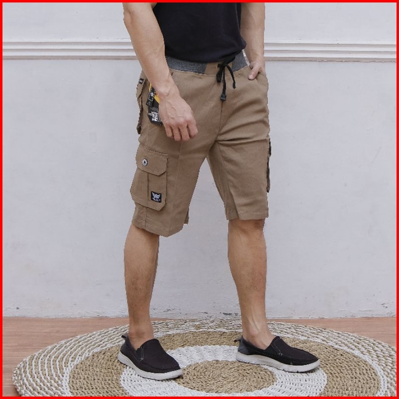 Celana Cargo Pendek Rip Pria Bahan Combed Stretch Premium