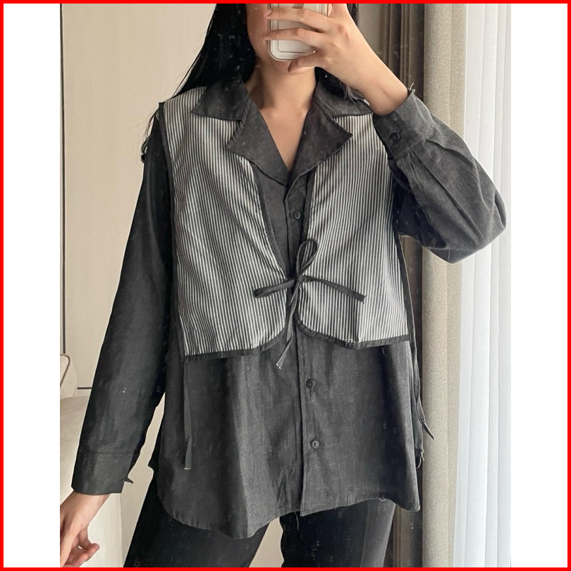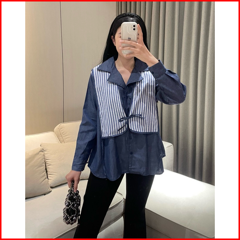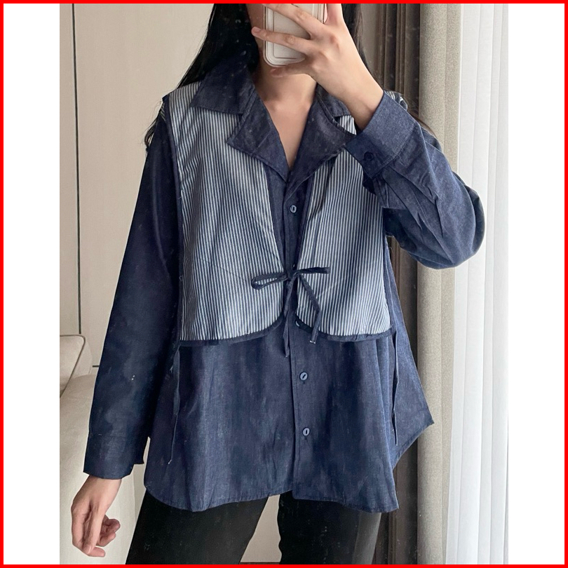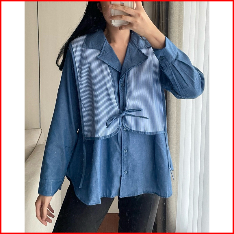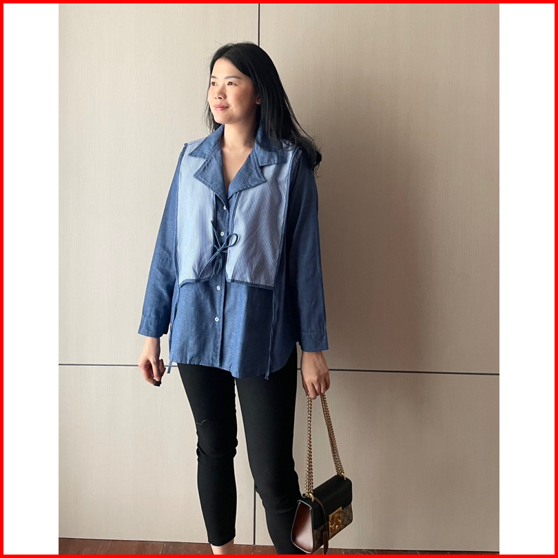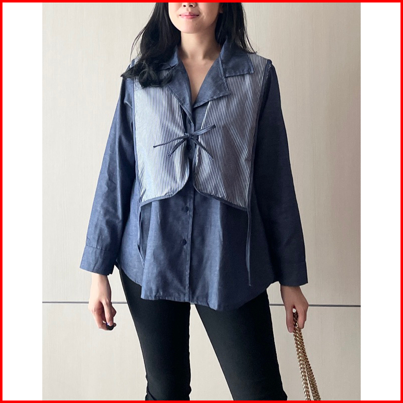 Eska Clothing - Brenda Shirt Blouse Kemeja Denim Wanita Oversize Korean Style Kantoran Kekinian Kantoran Mewah Terbaru M