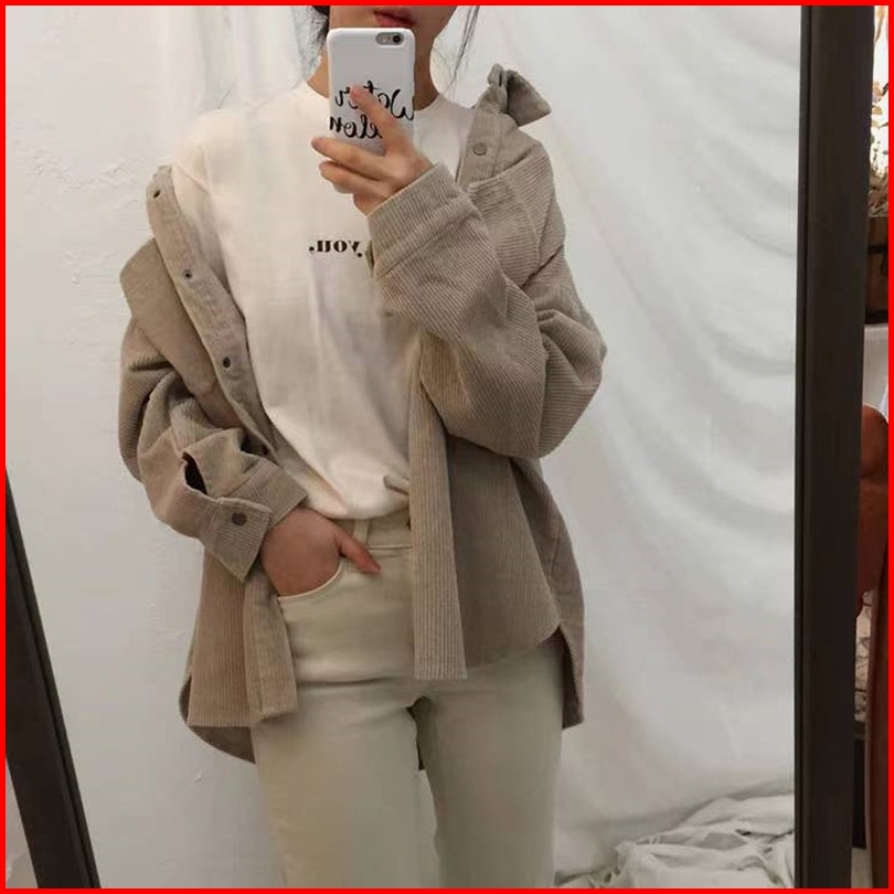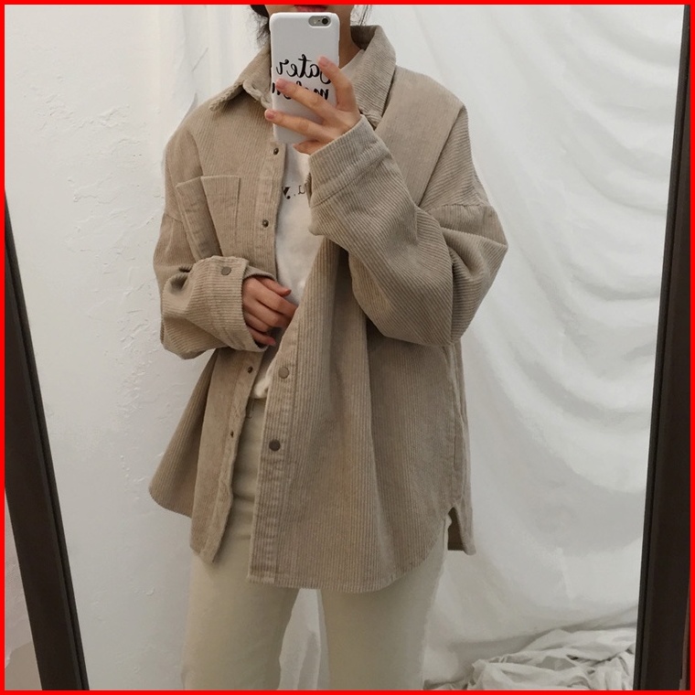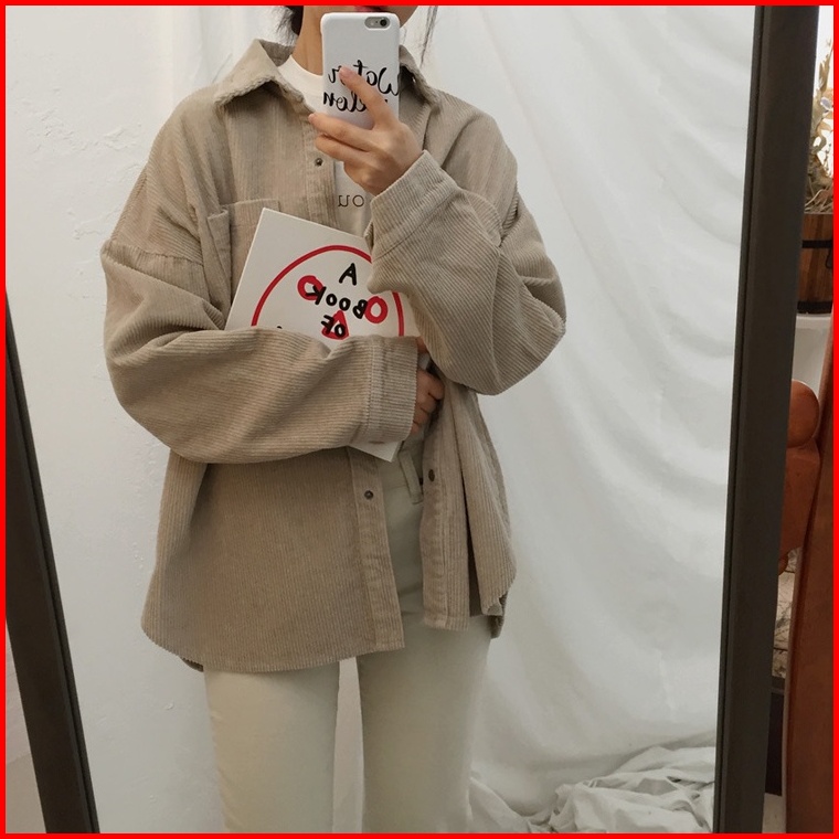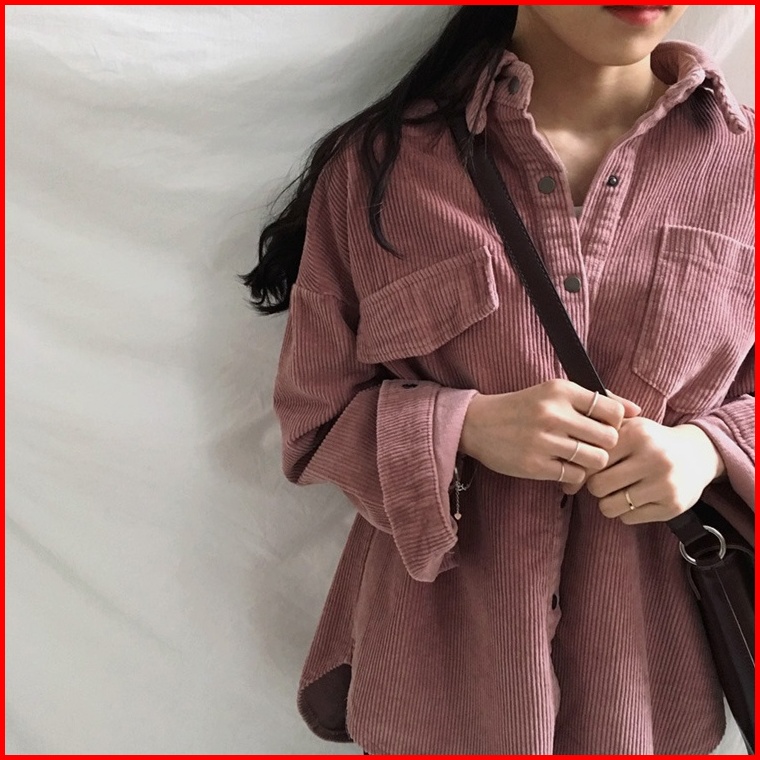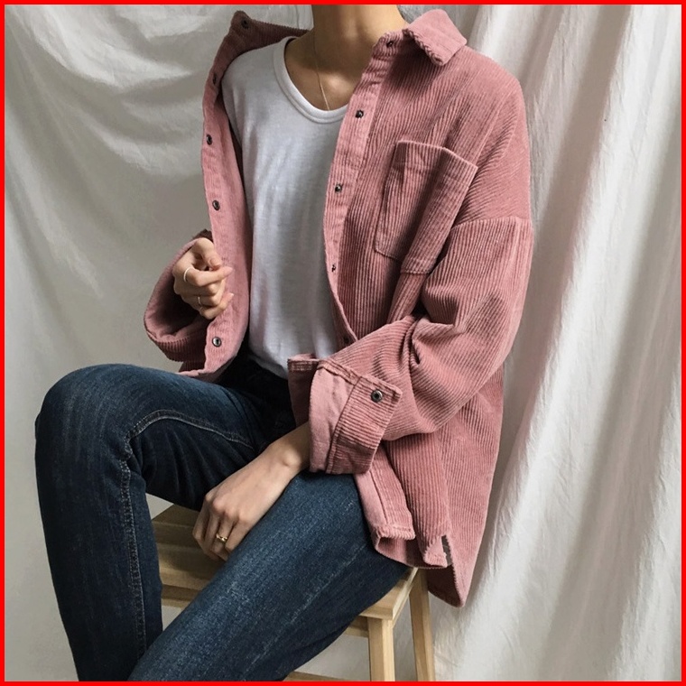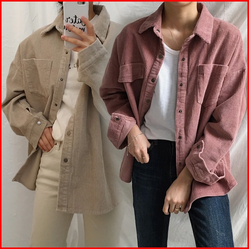 M-4xl Korduroi Gaya Korea Blouse Wanita Desain Retro Ukuran Plus Kemeja Wanita Atasan Lengan Panjang Longgar Kasual