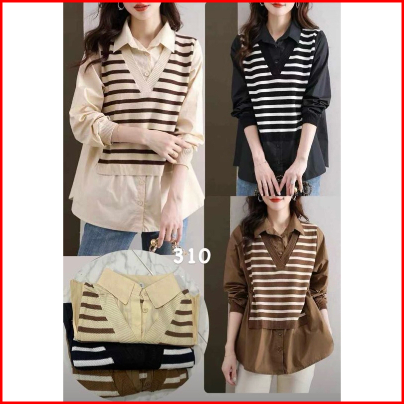 Kemeja Katun Mix Rajut Import Terbaru Bangkok Kemeja Korean Style Premium Slim-fitting Katun Katun