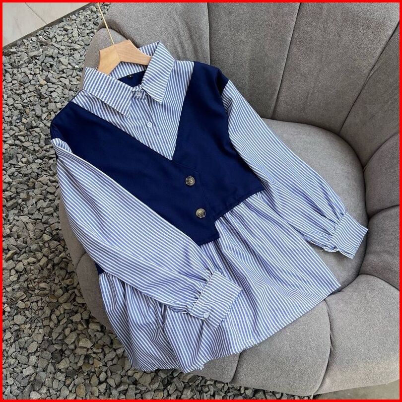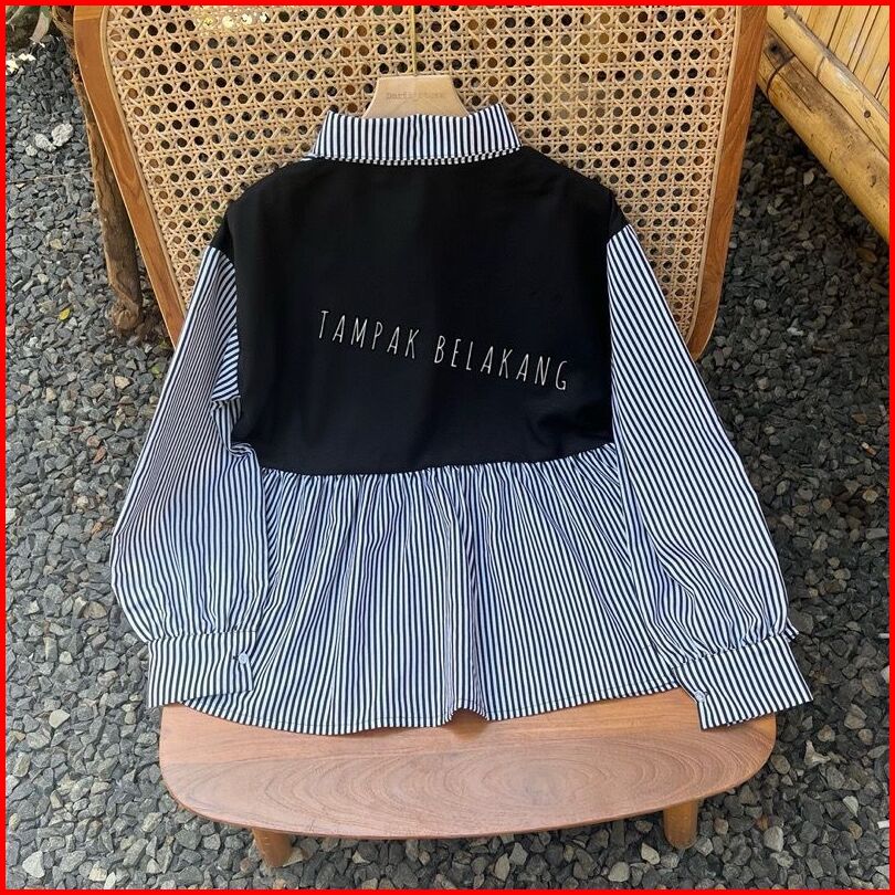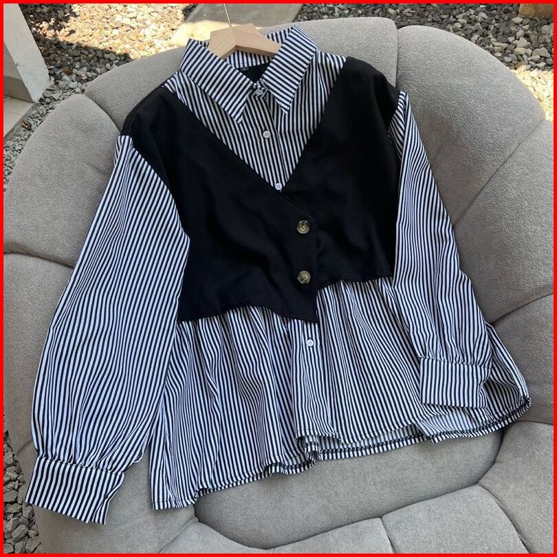Ramdan - Ribyla Kemeja Rompi Shakila Mix Katun Salur Jumbo - Ukuran Size S M L Xl Xxl 3xl 4xl Kemeja Wanita Terbaru Stri