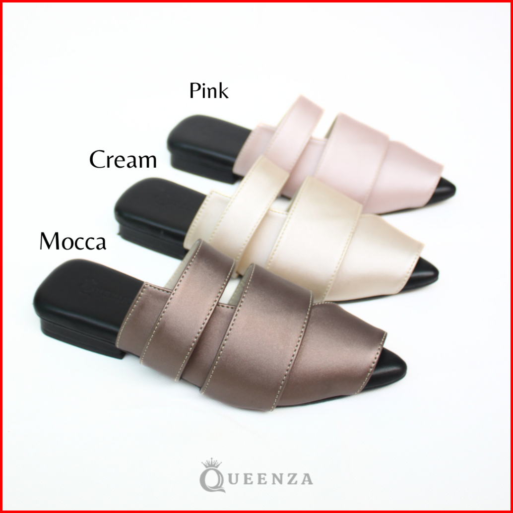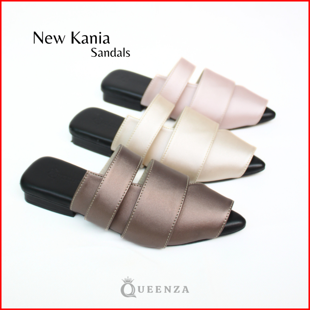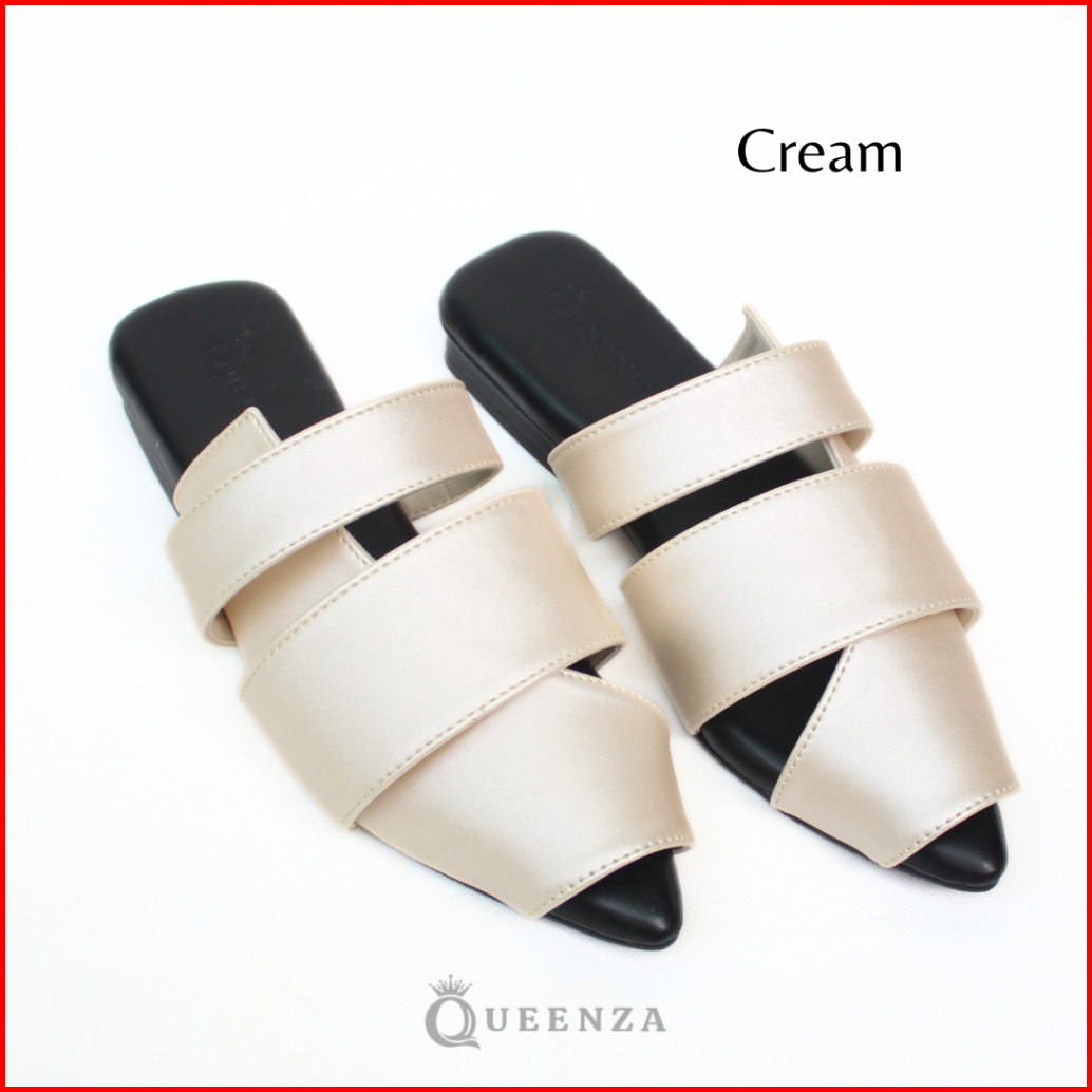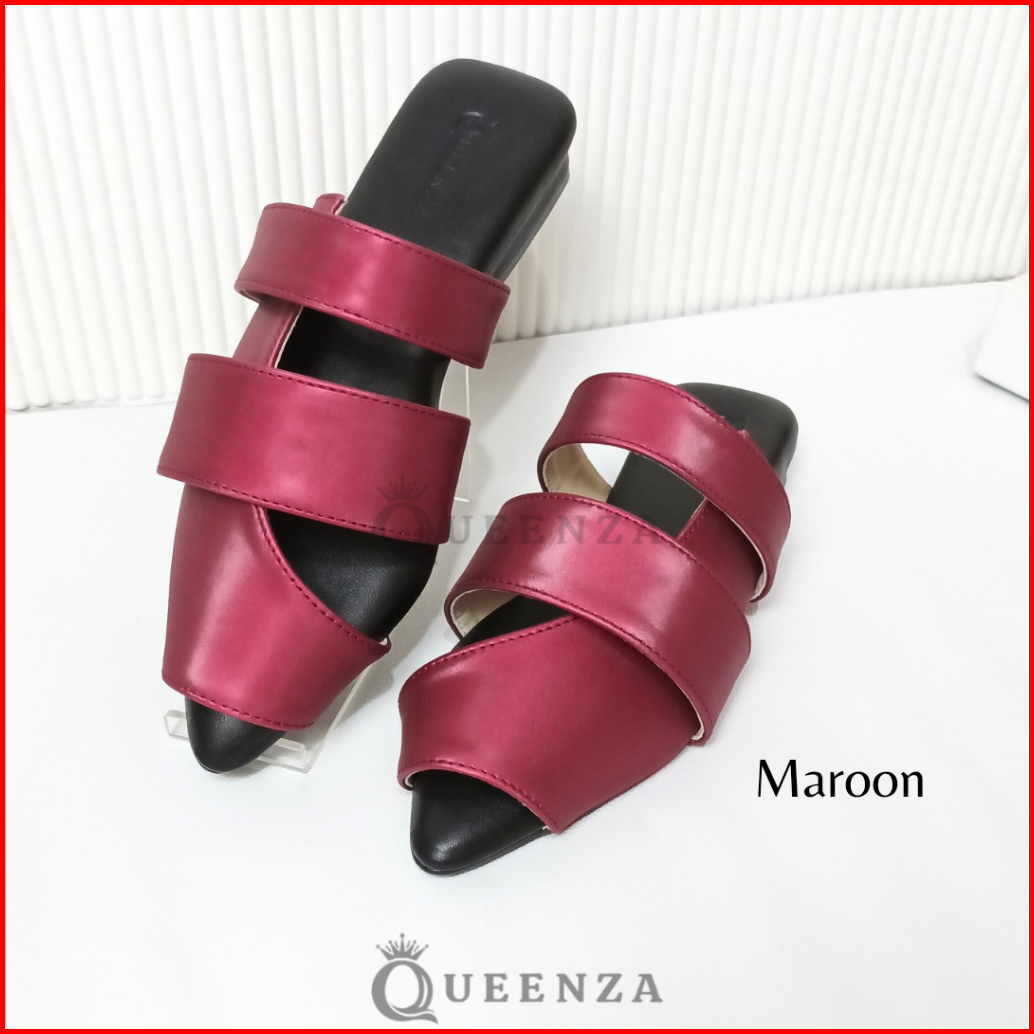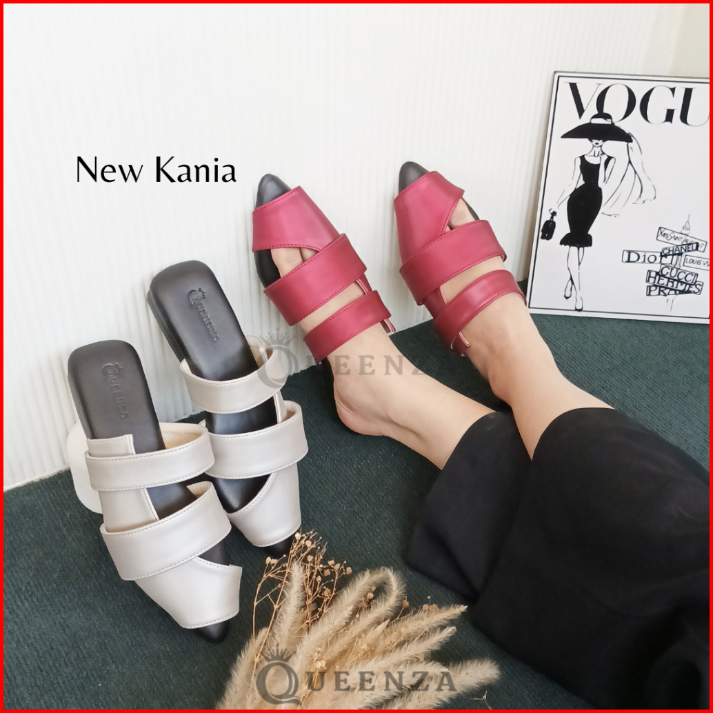 Queenza New Kania Sandal Mules Wanita Kekinian Hak 1 Cm Anti Slip