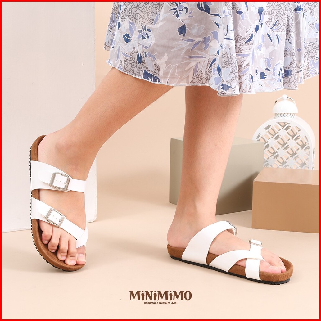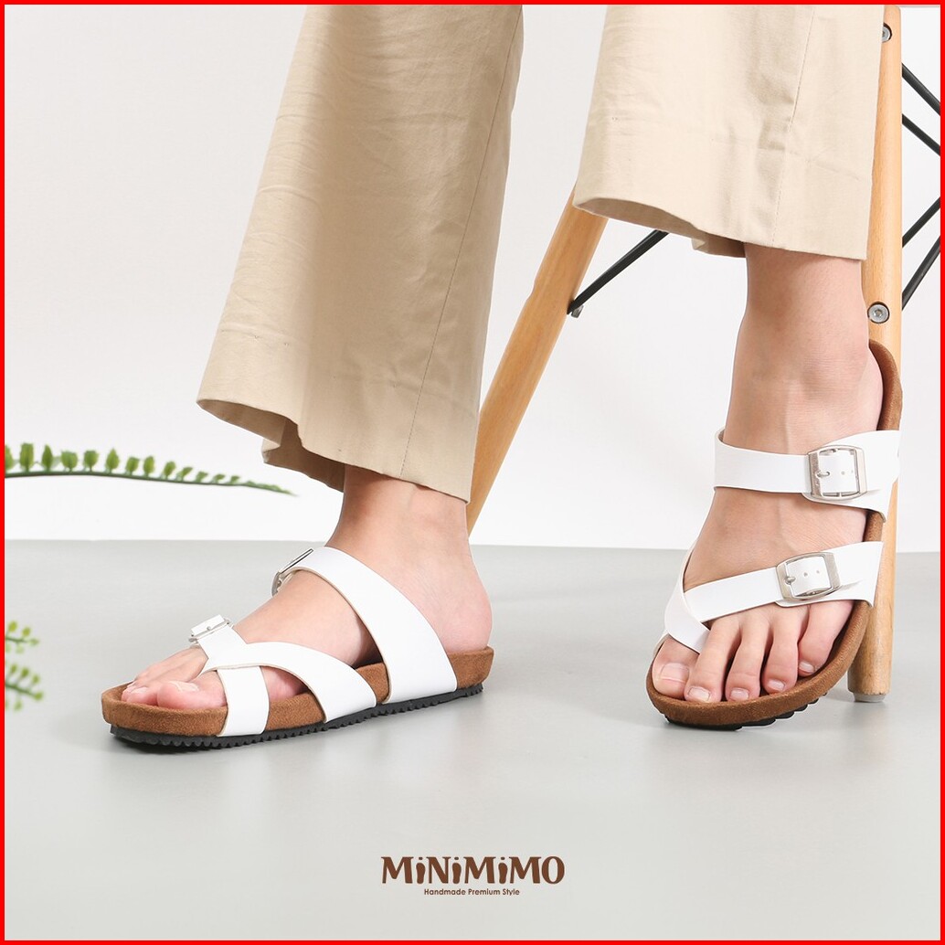 Minimimo By Anes Sandal Kulit Wanita Dan Pria Sandal Casual - Mf 002 White