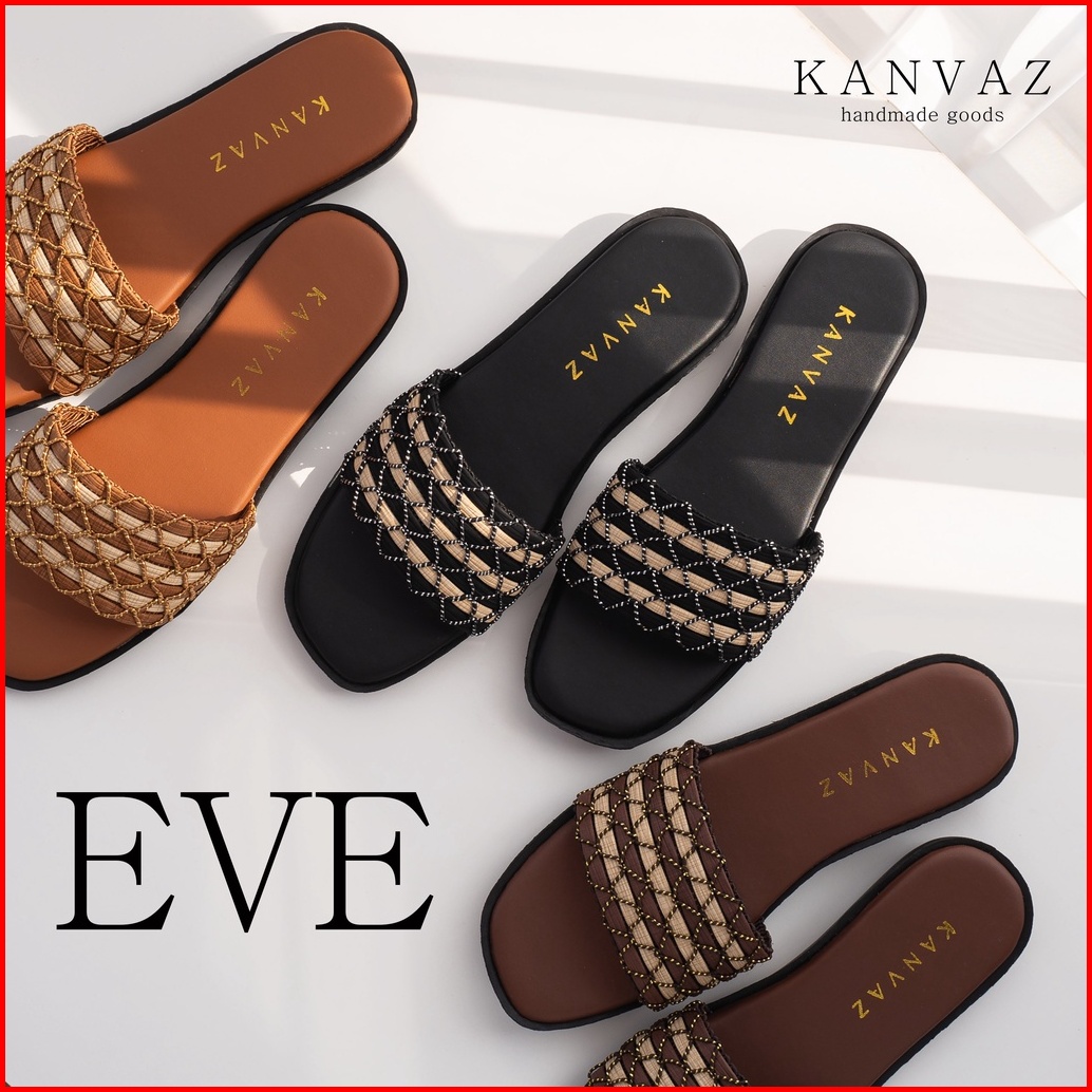 Kanvaz - Eve Sandal Teplek Rajut Wanita - Sandal Teplek Wanita Sandal Slop Cewek Murah Sandal Calvari