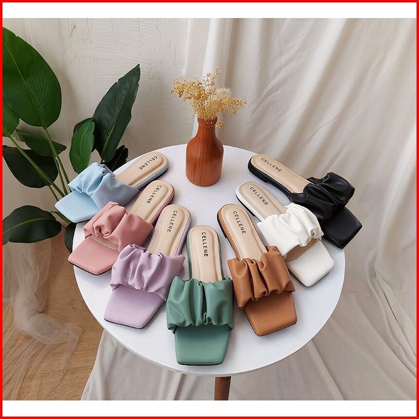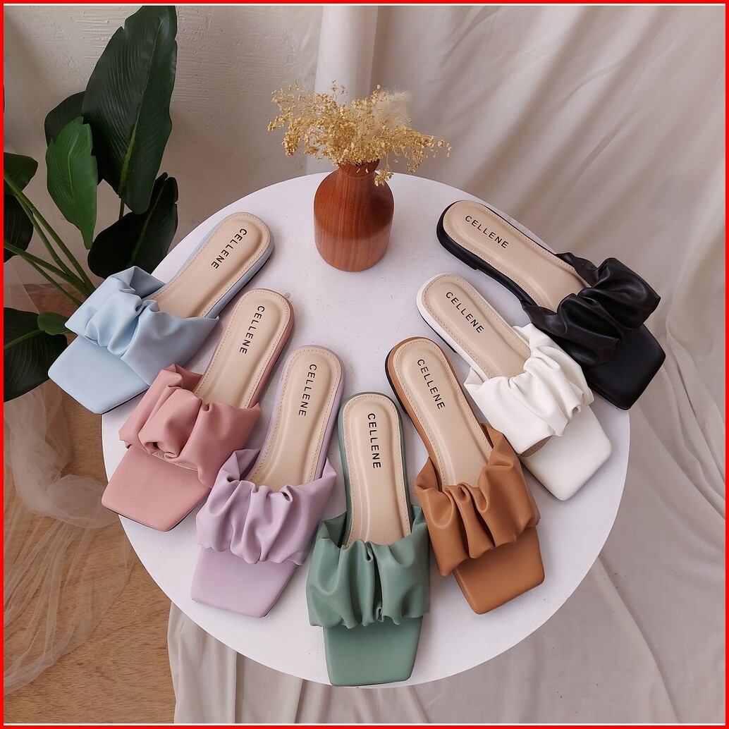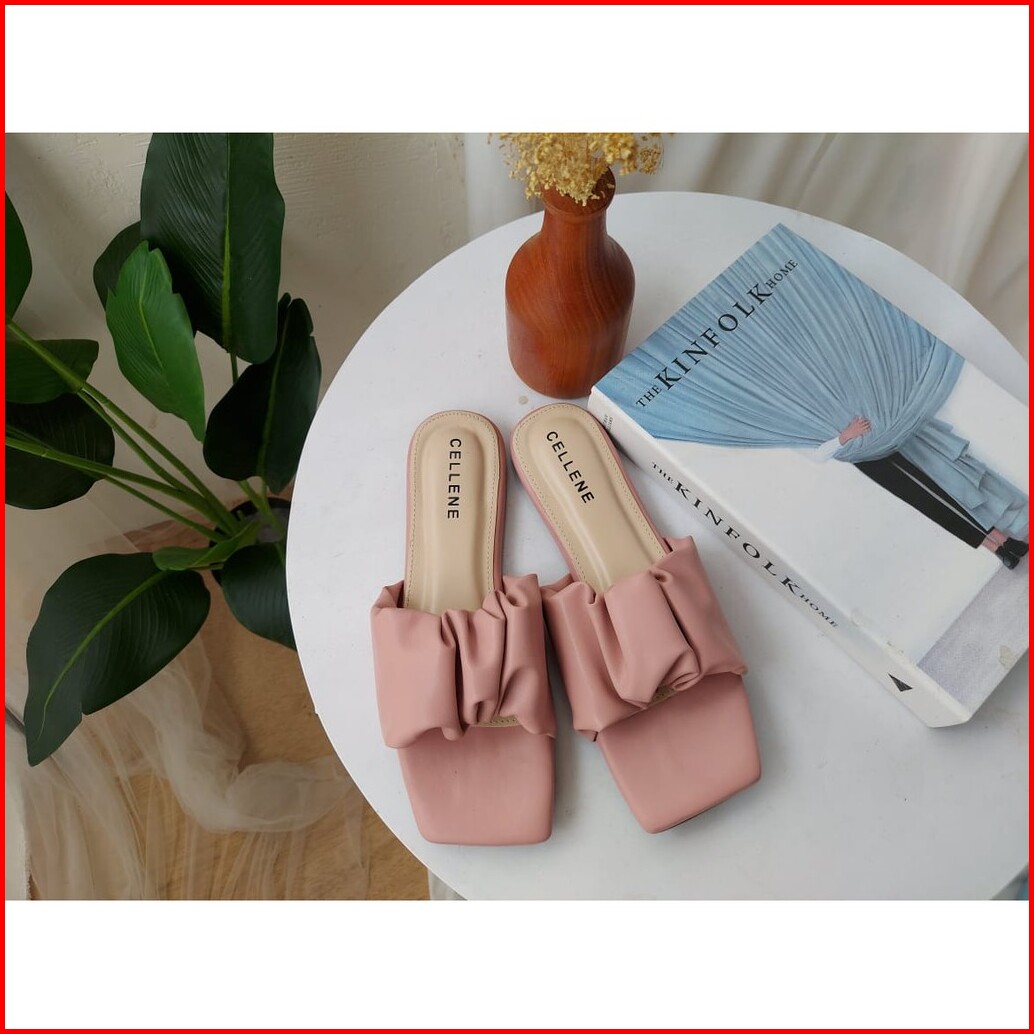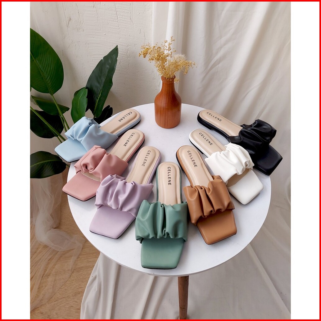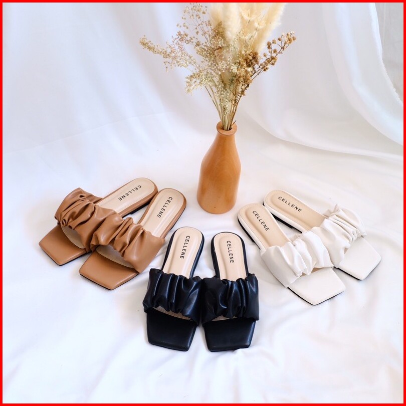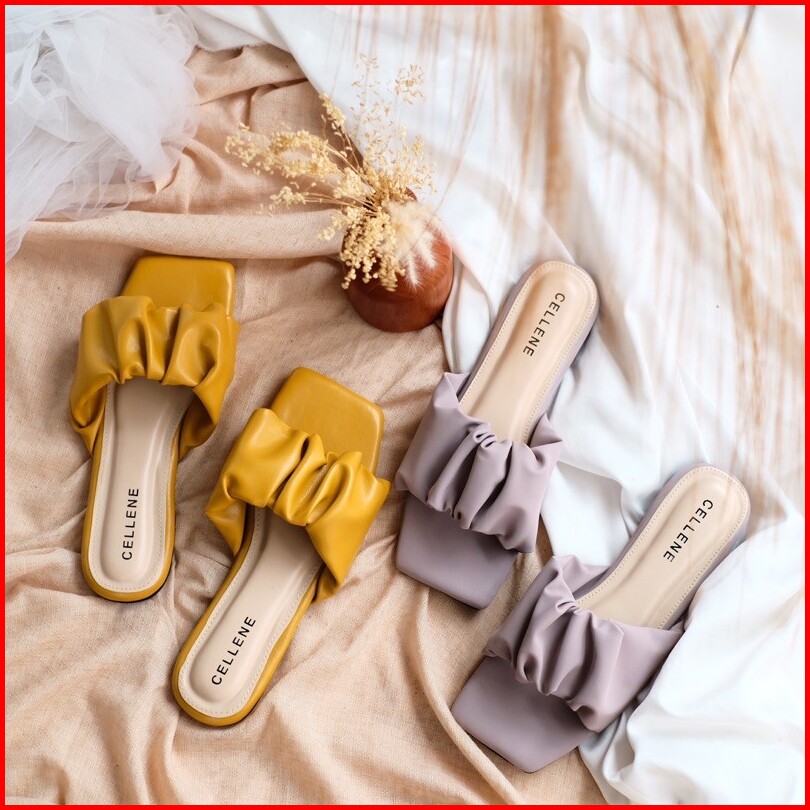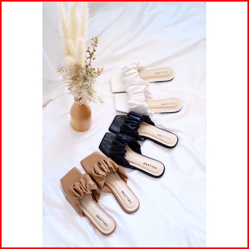 Cellene Pixa Flat Sandal Sandal Selop Kerut Wanita Teplek Harian