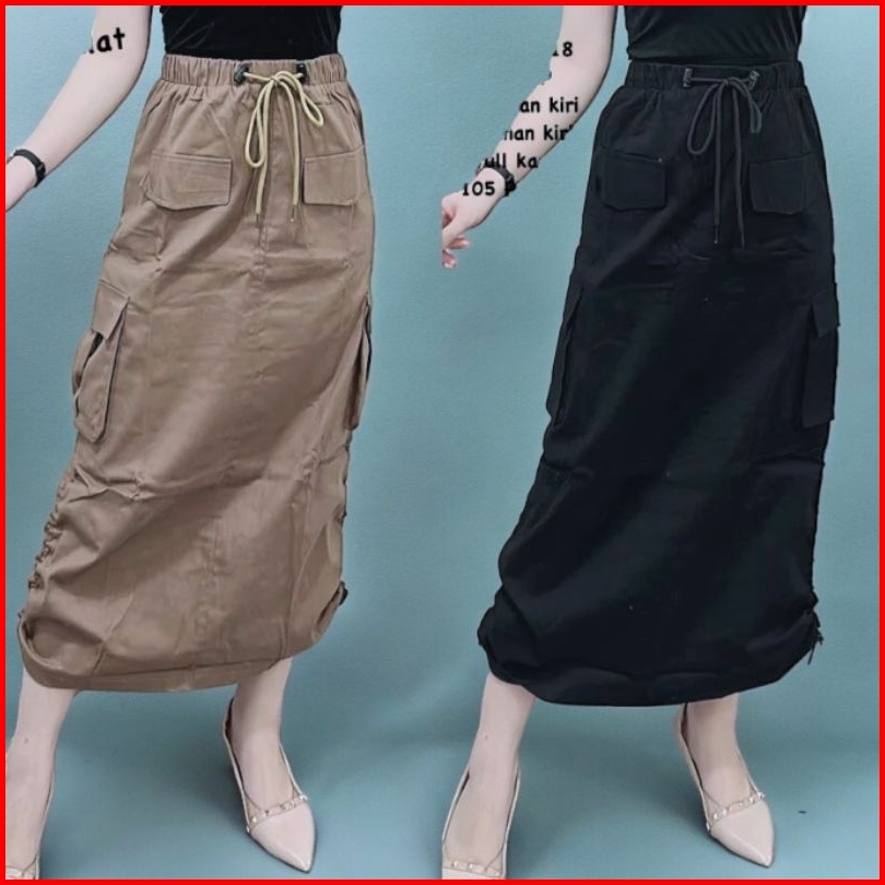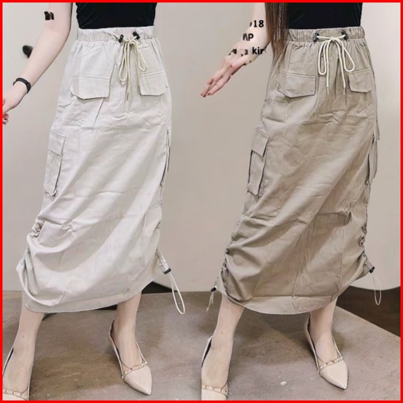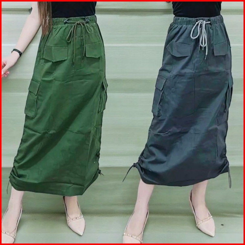 Rok Cargo Serut Samping Wanita Premium Korean Style Kekinian