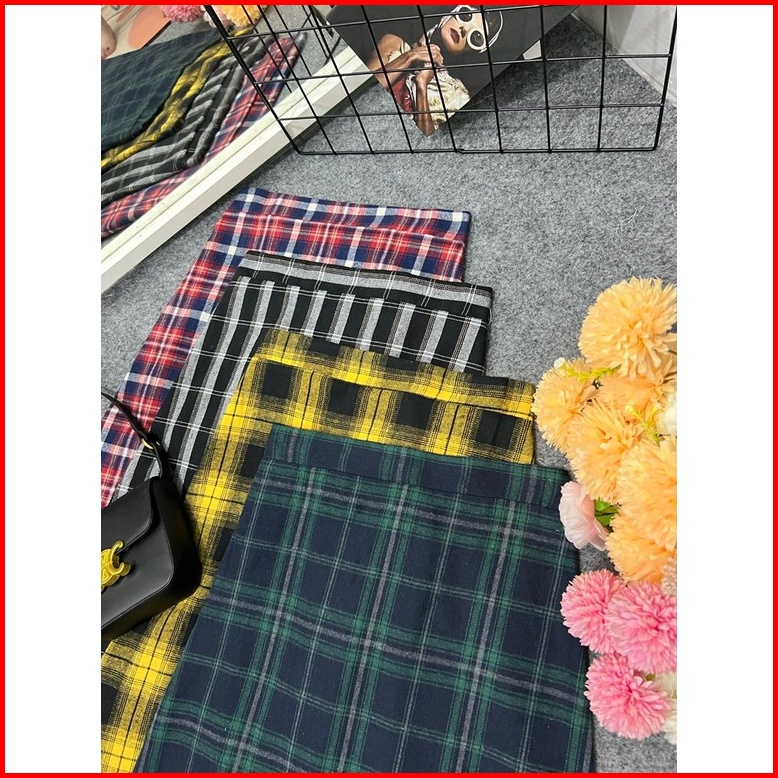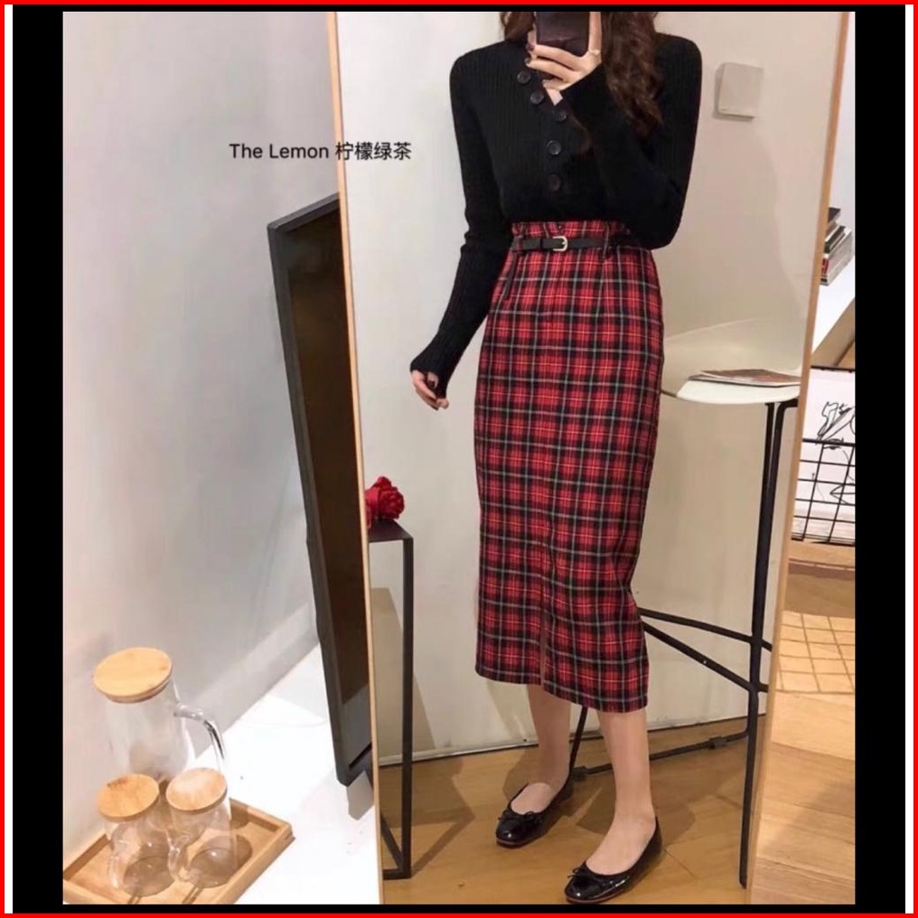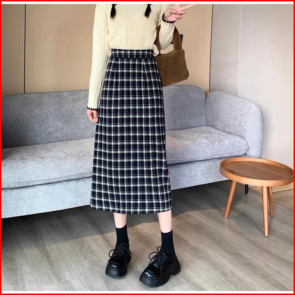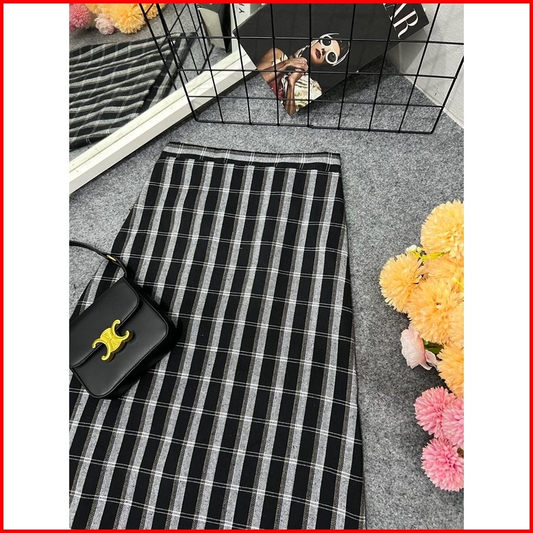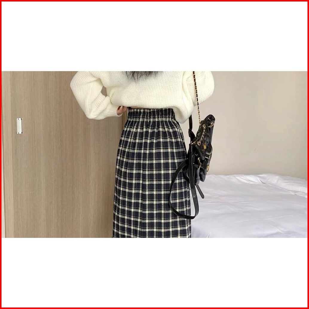 Halo Skirt Vintage Korean Style Skirt A Line Rok Span Wanita Motif Kotak