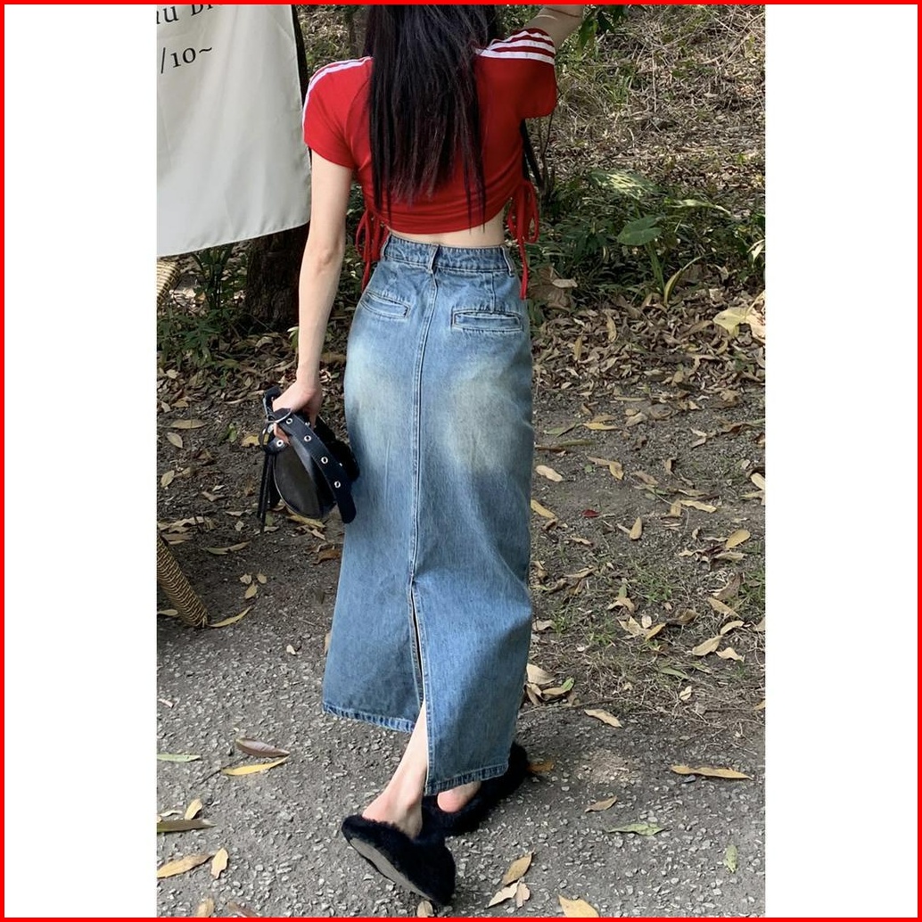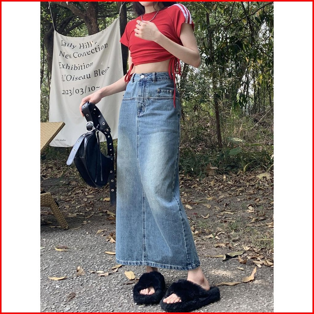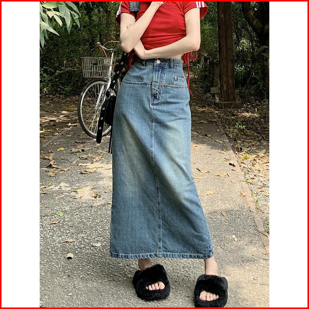 Rok Denim Highwaist Vintage Washed Rok A-line Premium Korean Style Rok Vintage Panjang