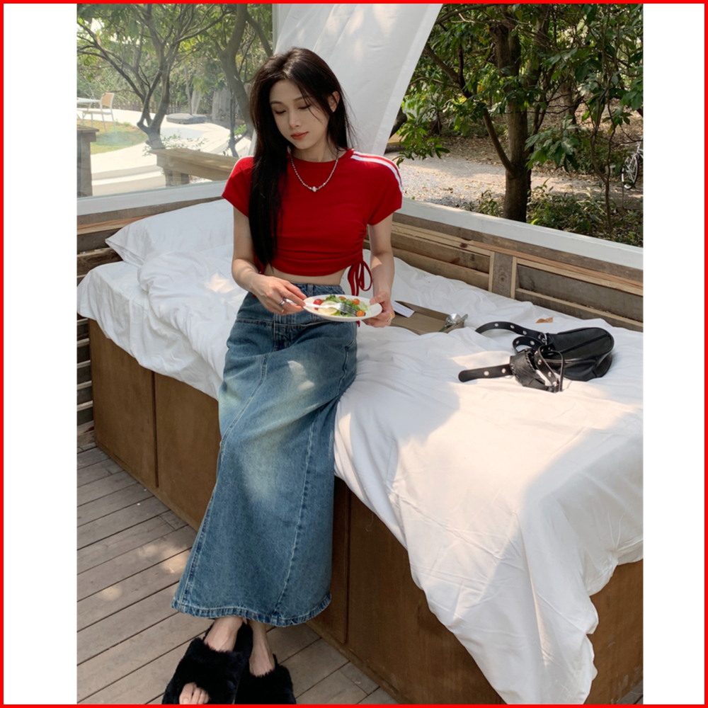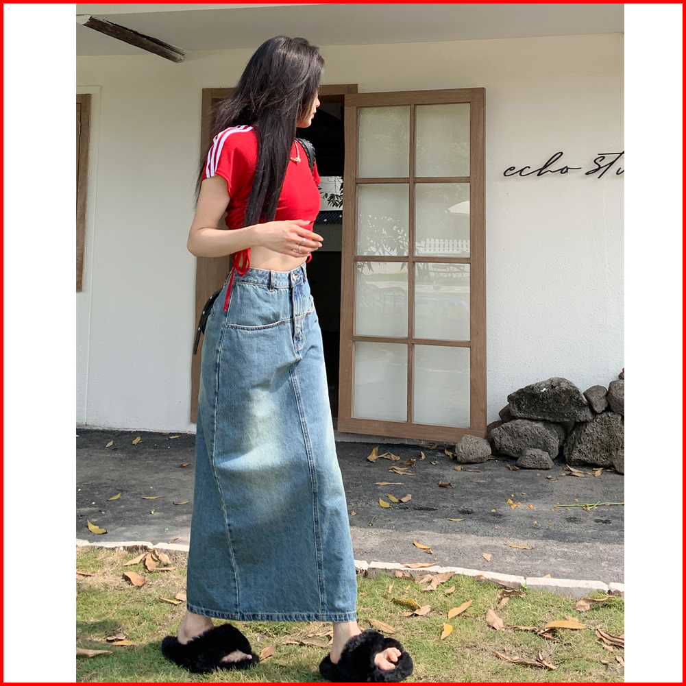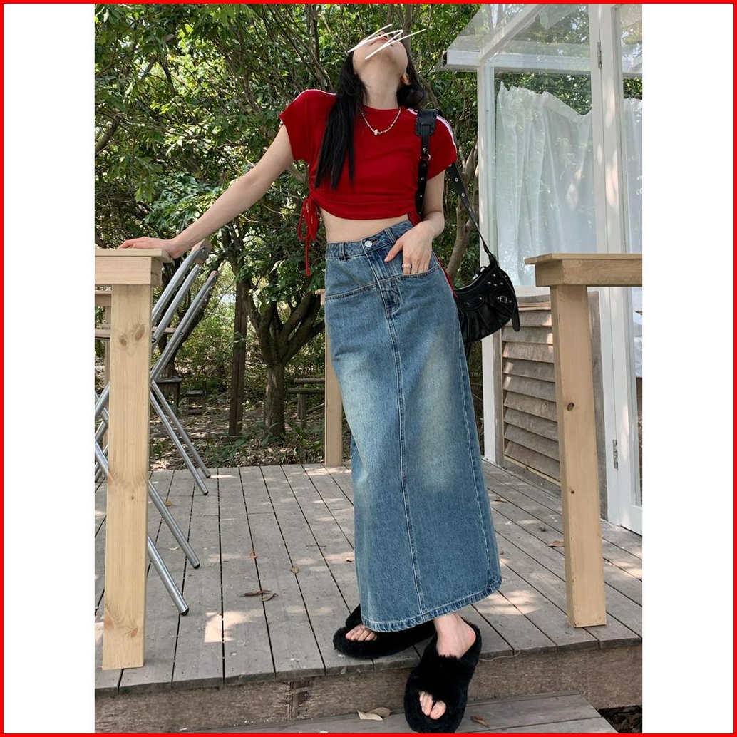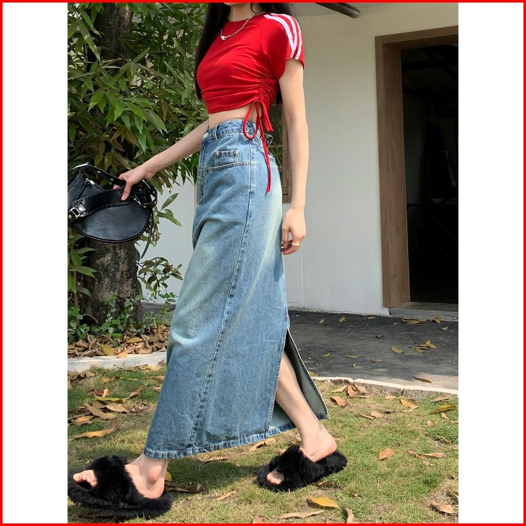 Rok Denim Highwaist Vintage Washed Rok A-line Premium Korean Style Rok Vintage Panjang