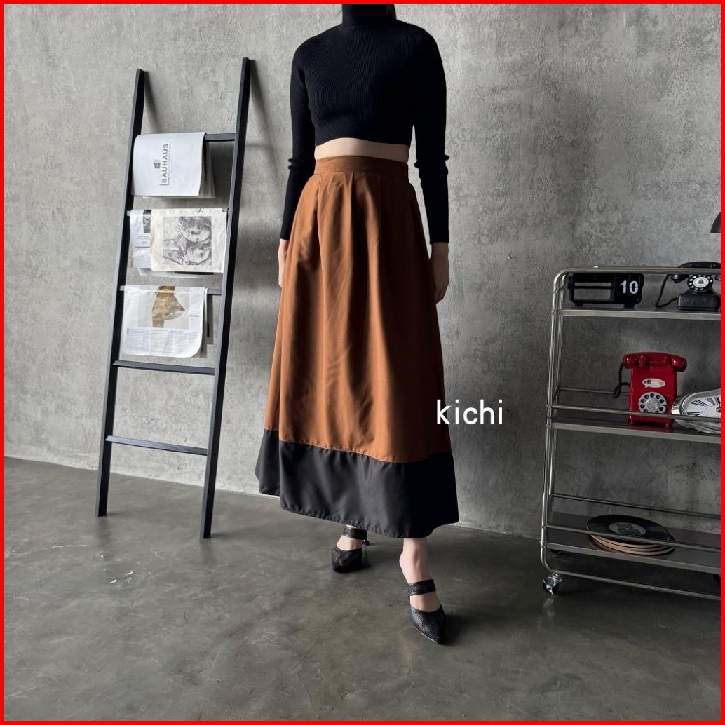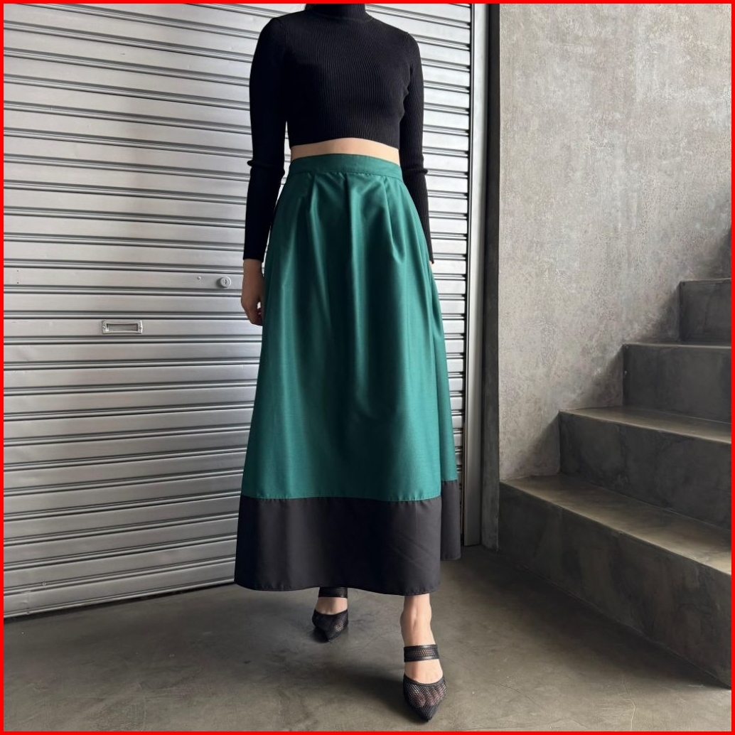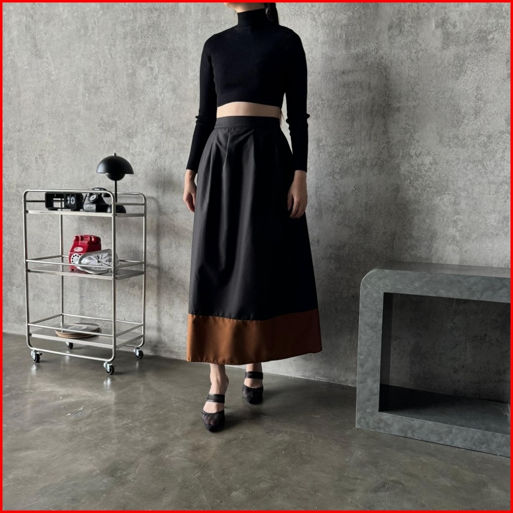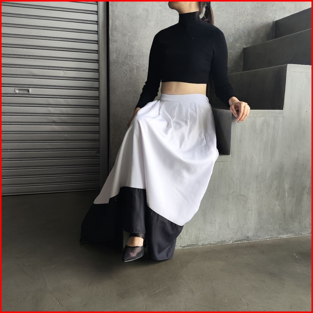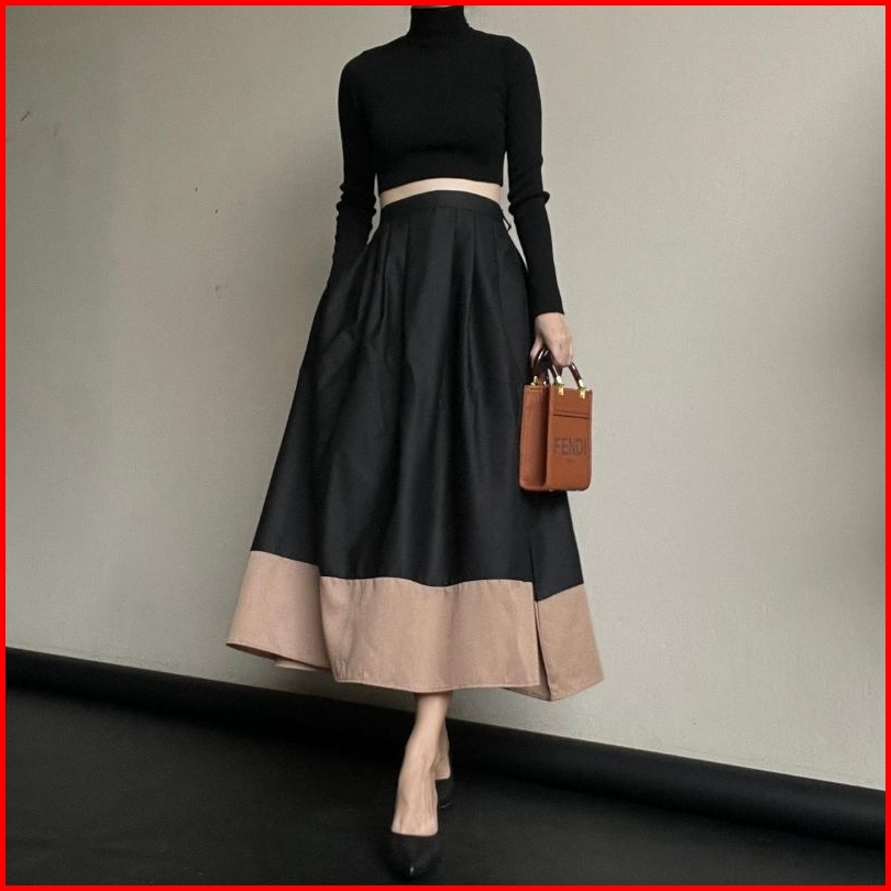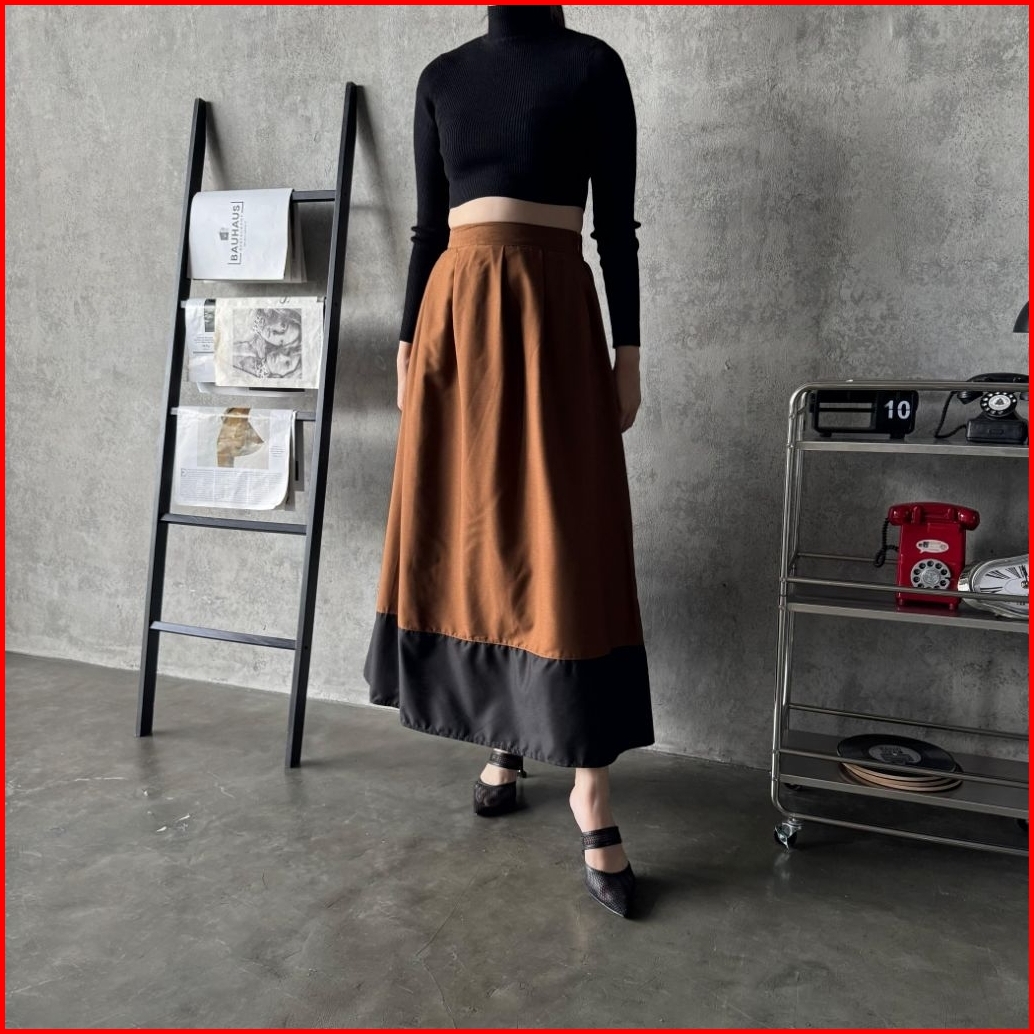 Fashion Rok Panjang Korean Style Long Flare Skirt Two Tone Skirt