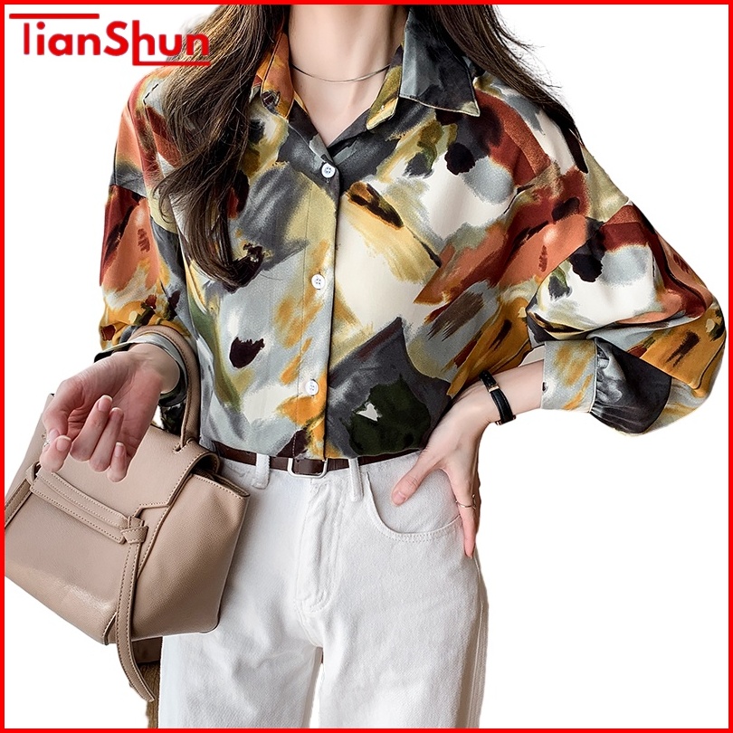 Tianshun Korean Version Chiffon Top Ol Work Casual Long Sleeve Shirt Women S Fashionable Lapel Shirt