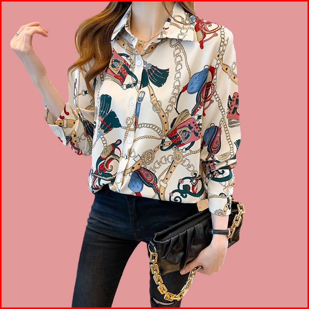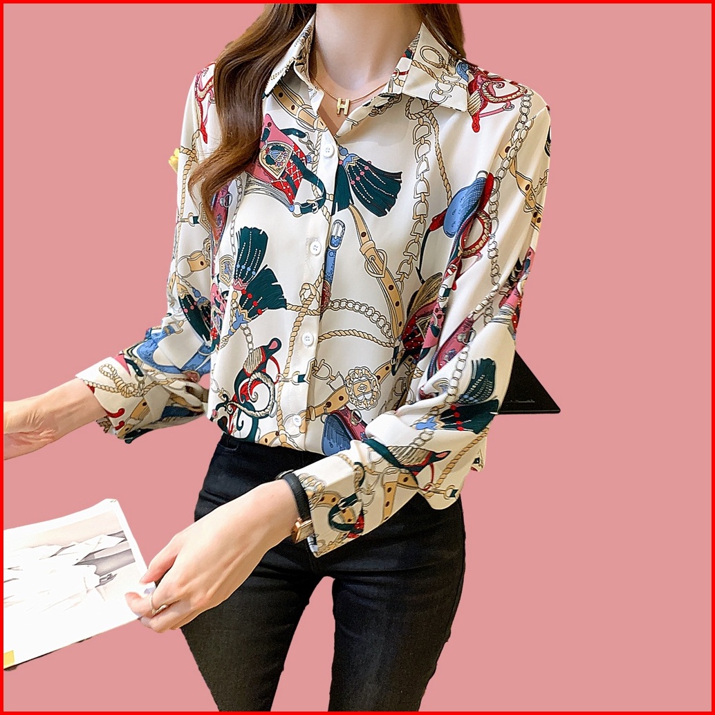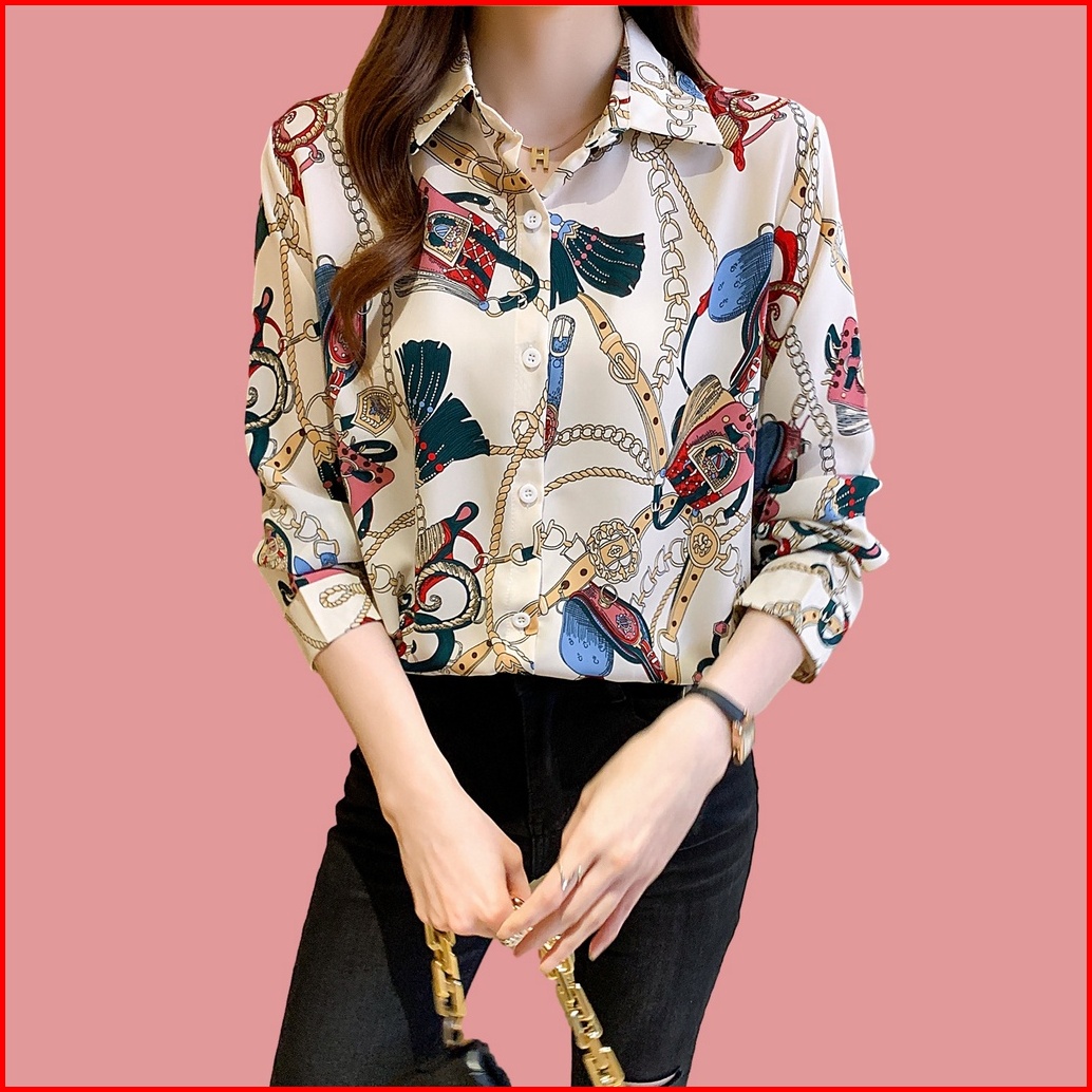 Kemeja Lengan Panjang Sifon Kain Berkualitas Tinggi Untuk Wanita Atasan Fashion Kasual Gaya Korea
