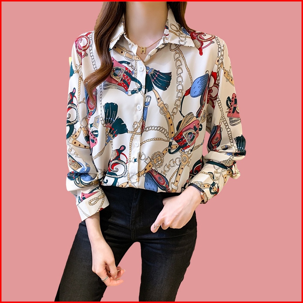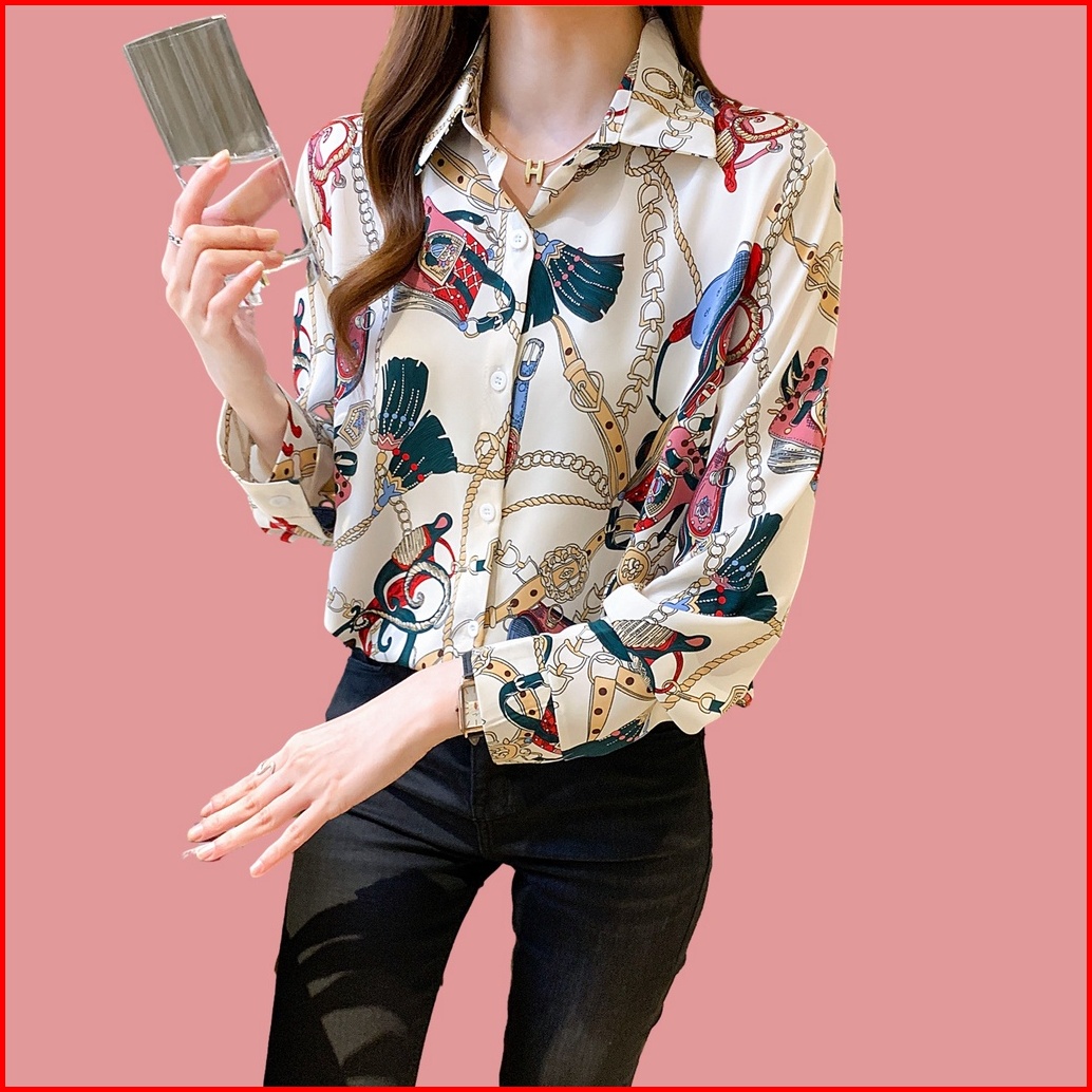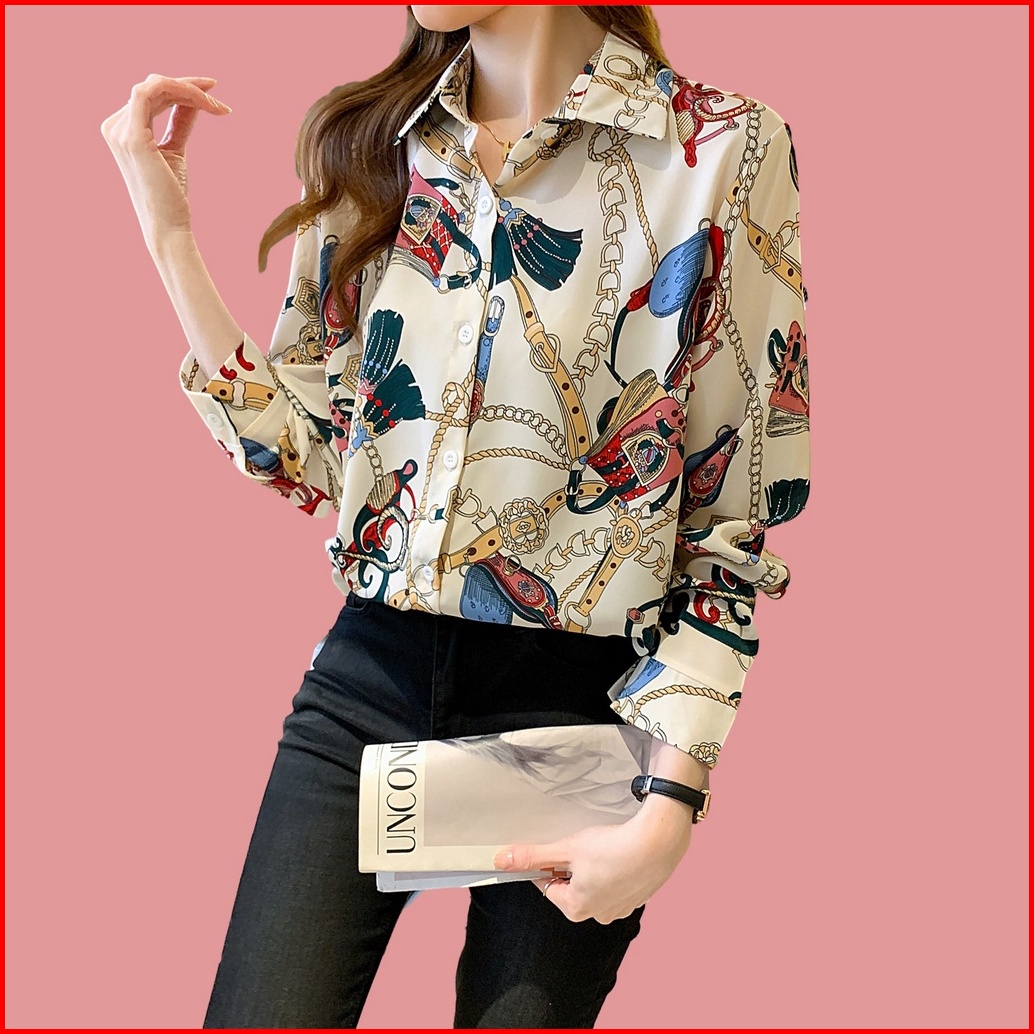 Kemeja Lengan Panjang Sifon Kain Berkualitas Tinggi Untuk Wanita Atasan Fashion Kasual Gaya Korea