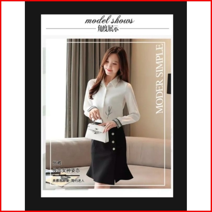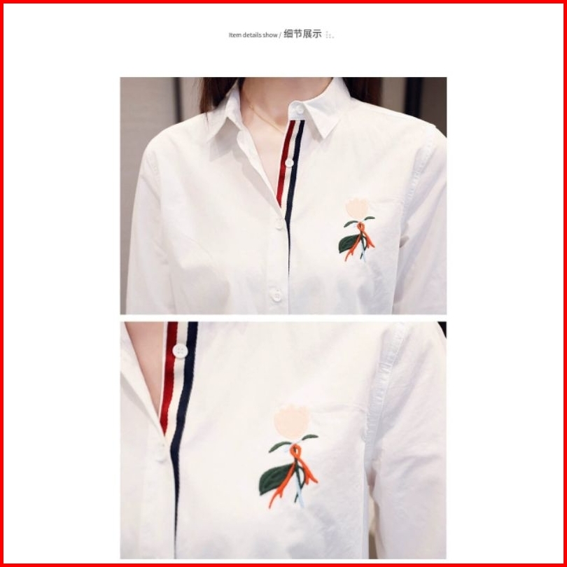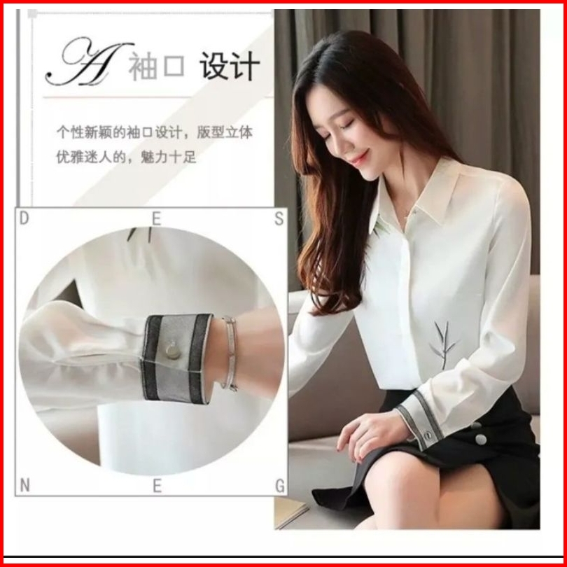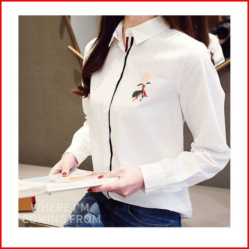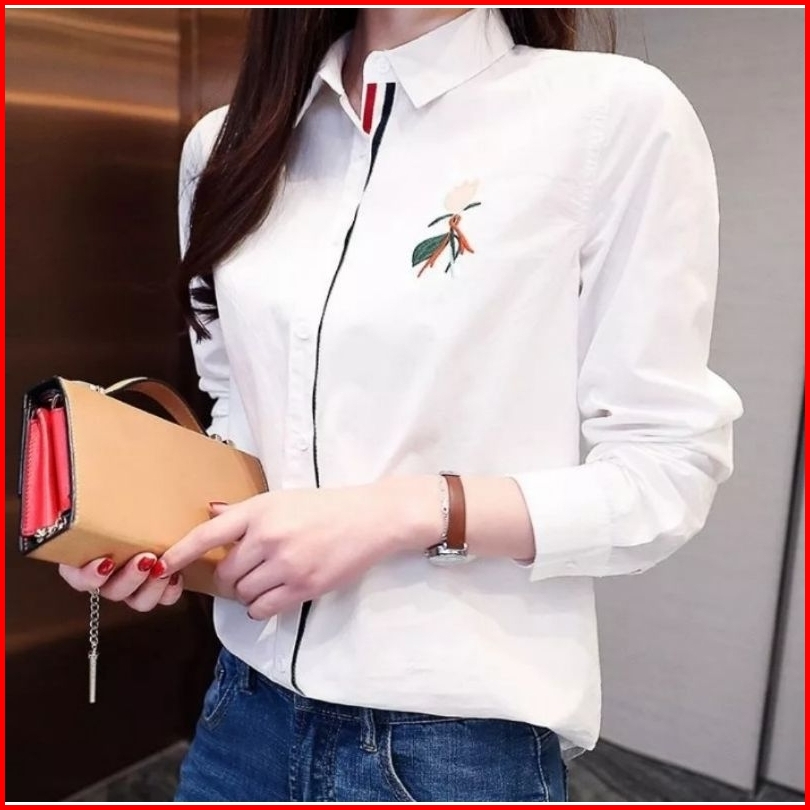 Kemeja Kasual Formal Putih Polos Bordir Pakayan Wanita Atasan Kemeja