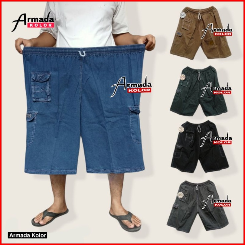 Celana Pendek Cargo Jumbo Bahan Semi Jeans Berkualitas Premium