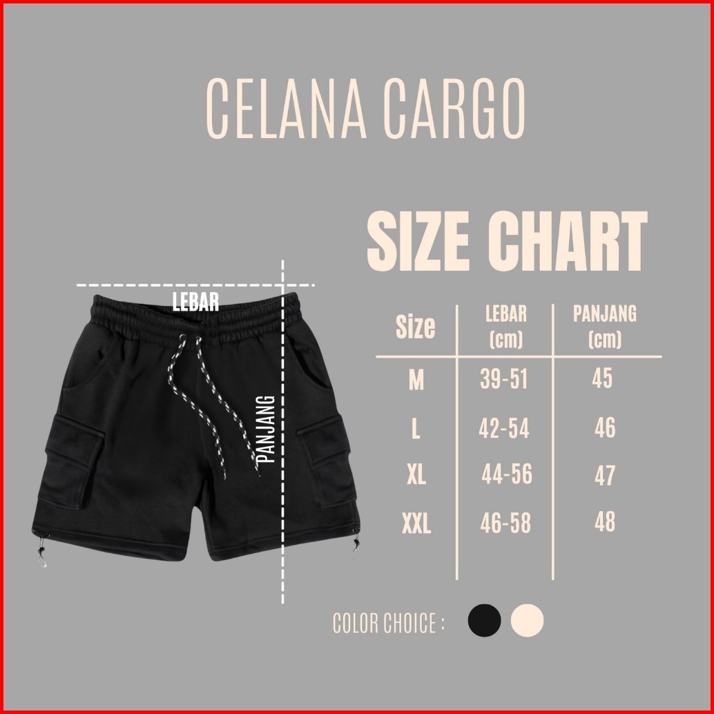 Celana Cargo Pendek Basic Unisex Shortpants Cargo Fleece Bahan Lembut Adem