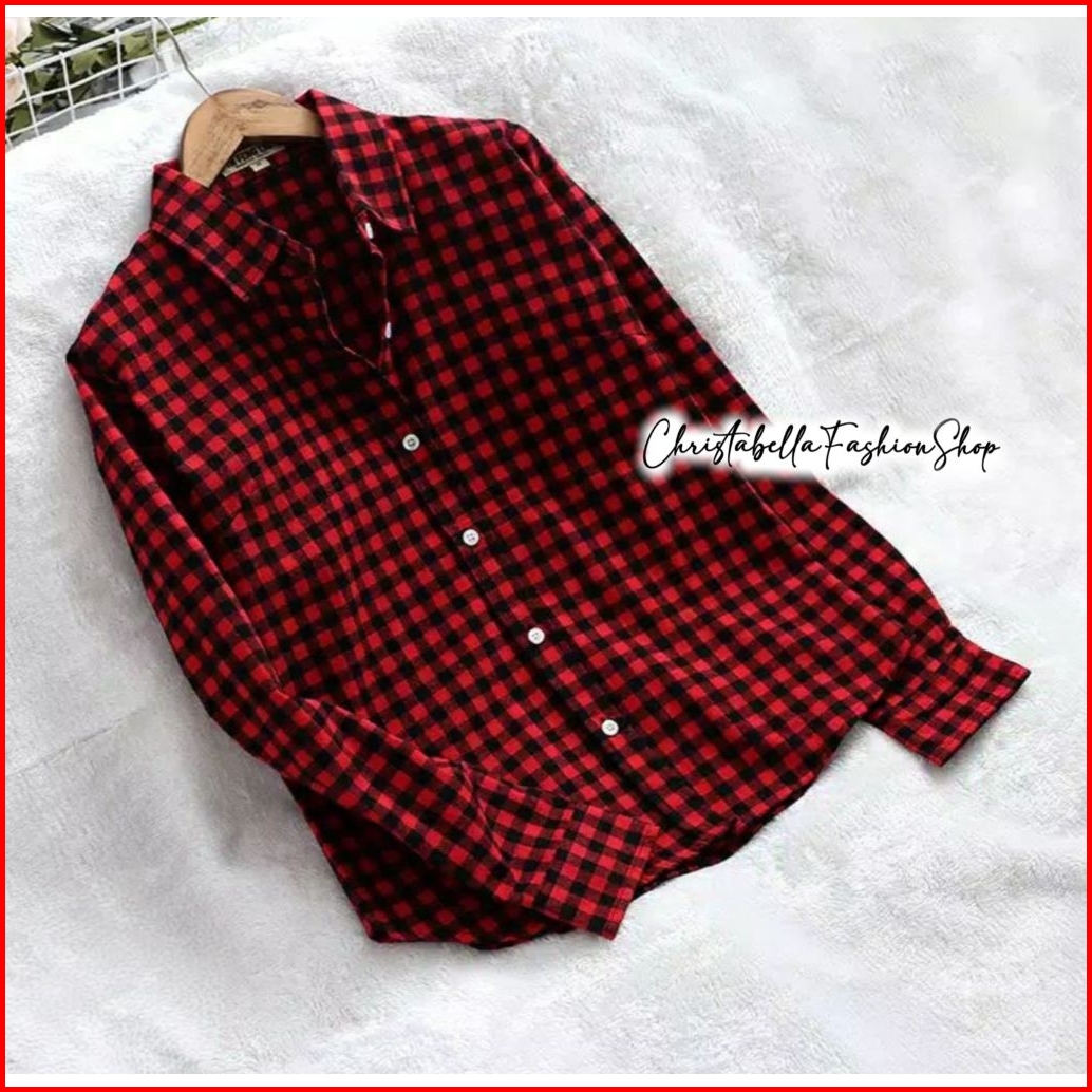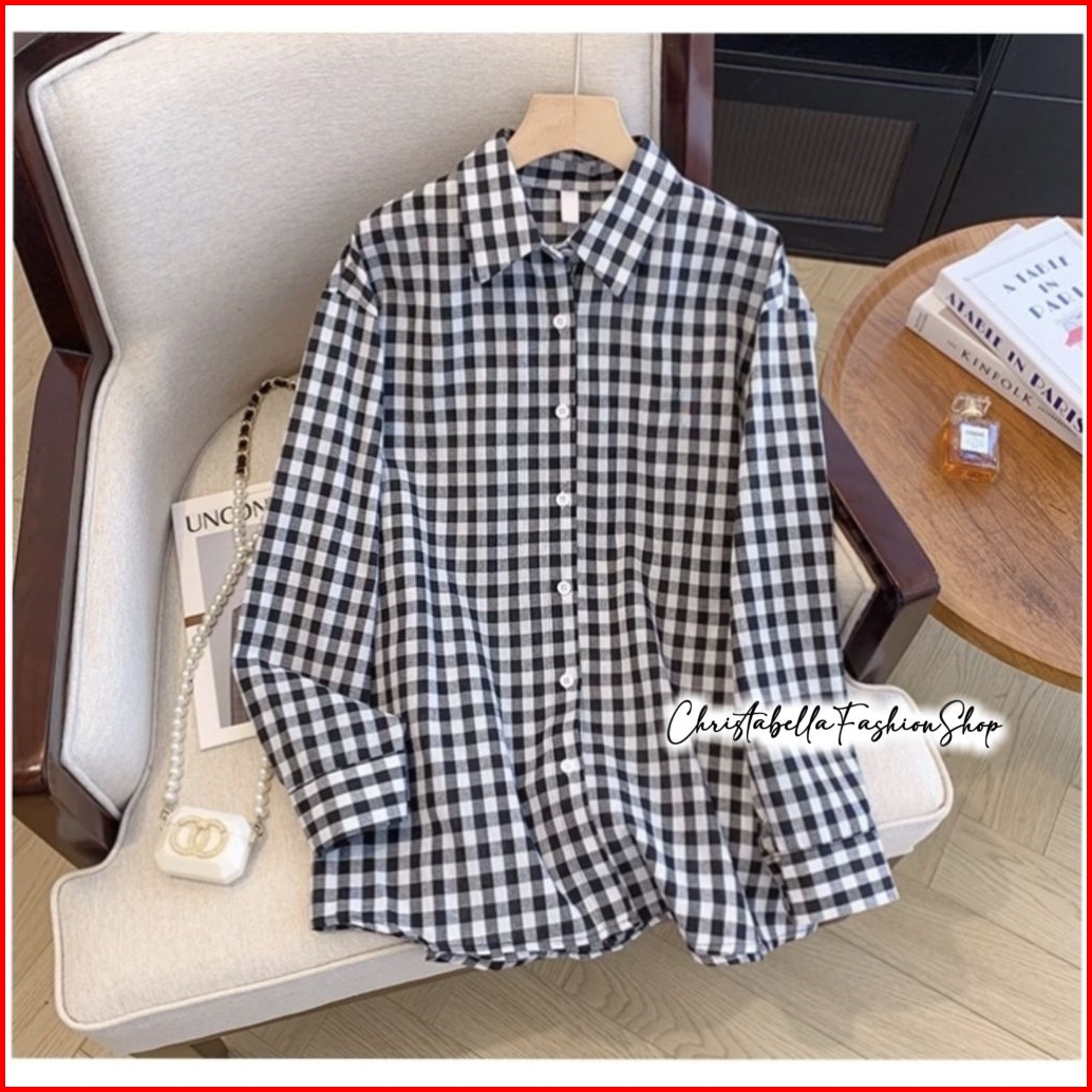 Kemeja Kotak Kotak Wanita Atasan Oversize Model Longgar Casual Basic Shirt Korean Top Style Wanita