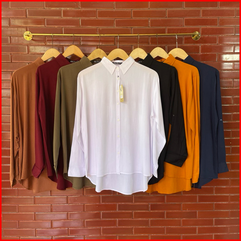 Kemeja Atasan Wanita Kameja Cewek Perempuan Polos Casual Untuk Kuliah Dan Kerja Bahan Rayon Premium