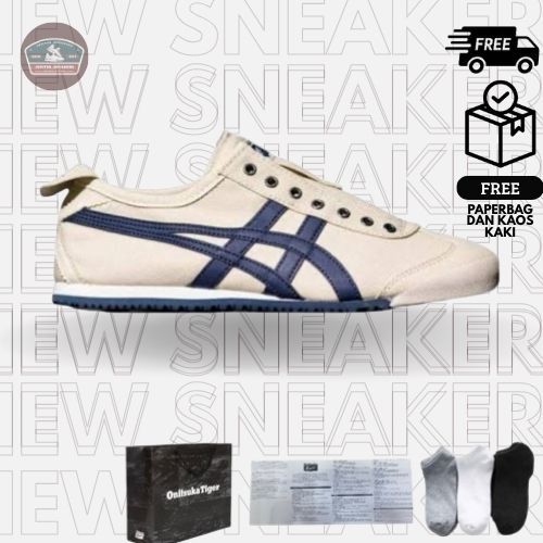 Sepatu Onitsuka Tiger Sepatu Wanita /Sepatu Pria Mexico 66 SlipOn CreamNavy Free Paperbag sepatu onitsuka original pria