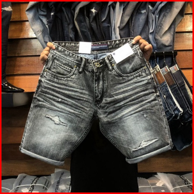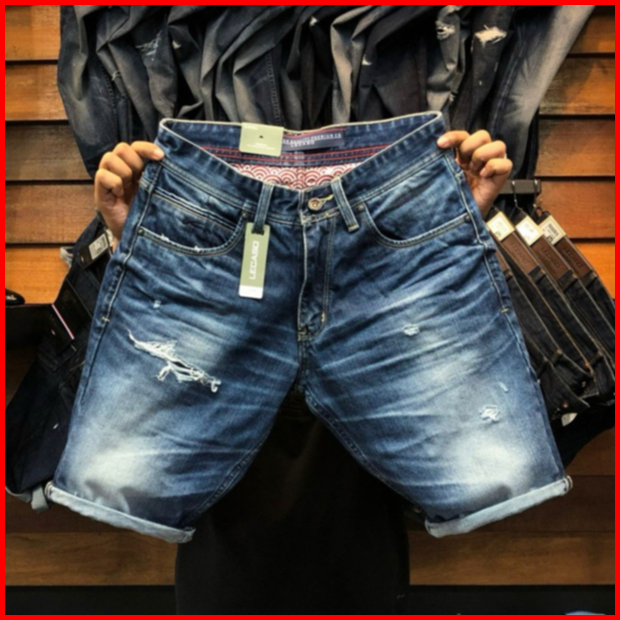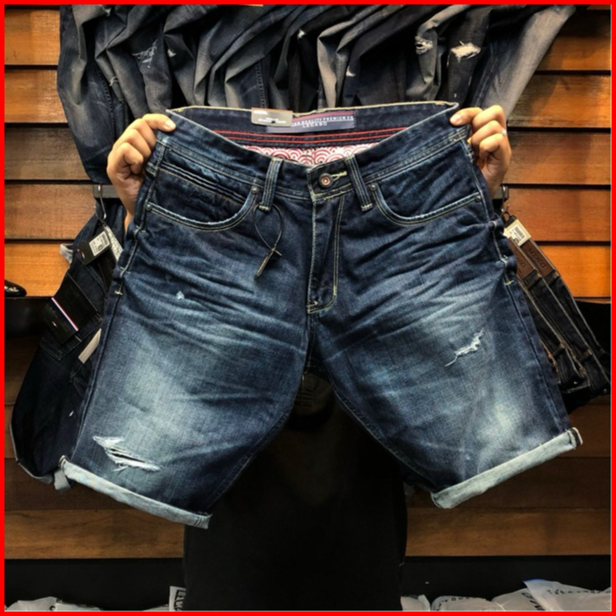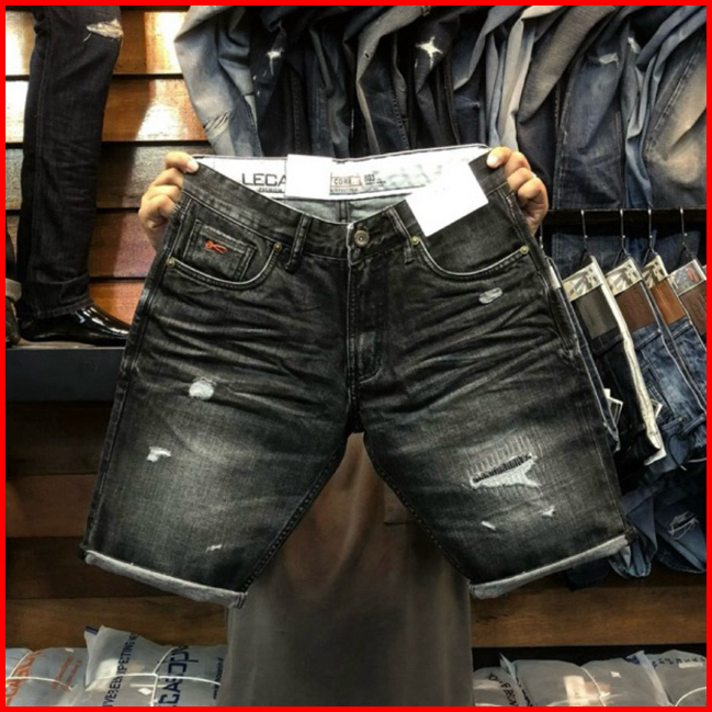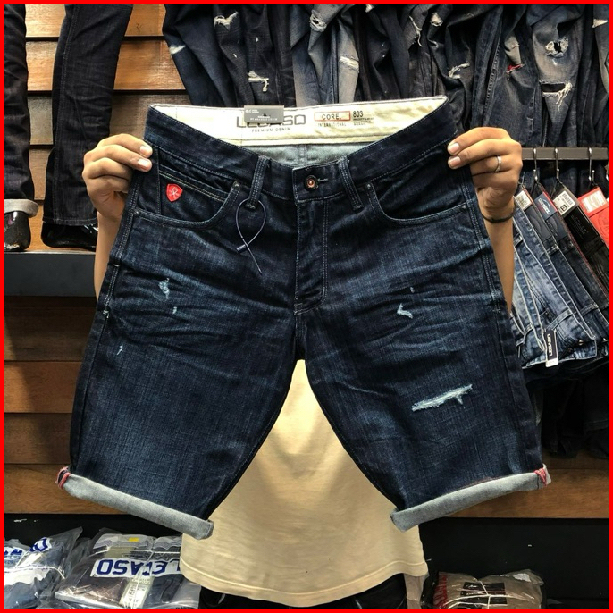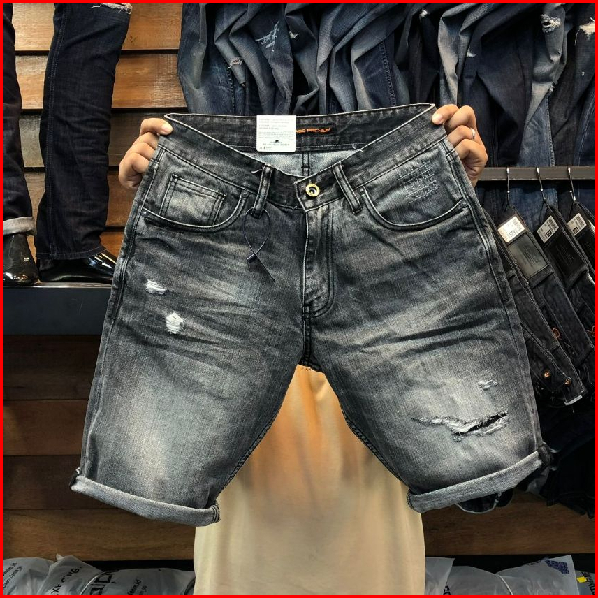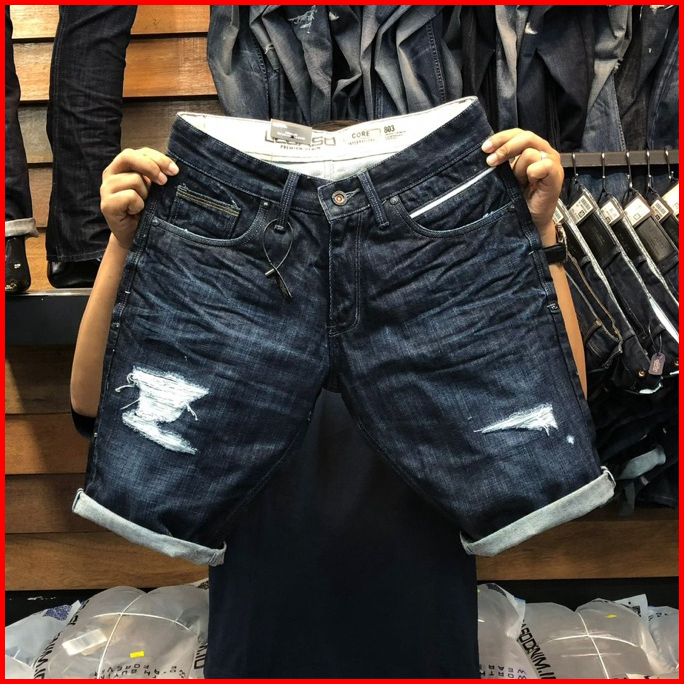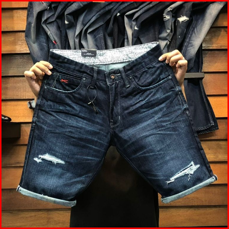 Celana Pendek Pria Import Lecaso Denim - Celana Denim Pria Slimfit Premium - Celana Jeans Pria Distro Ripped Sobek