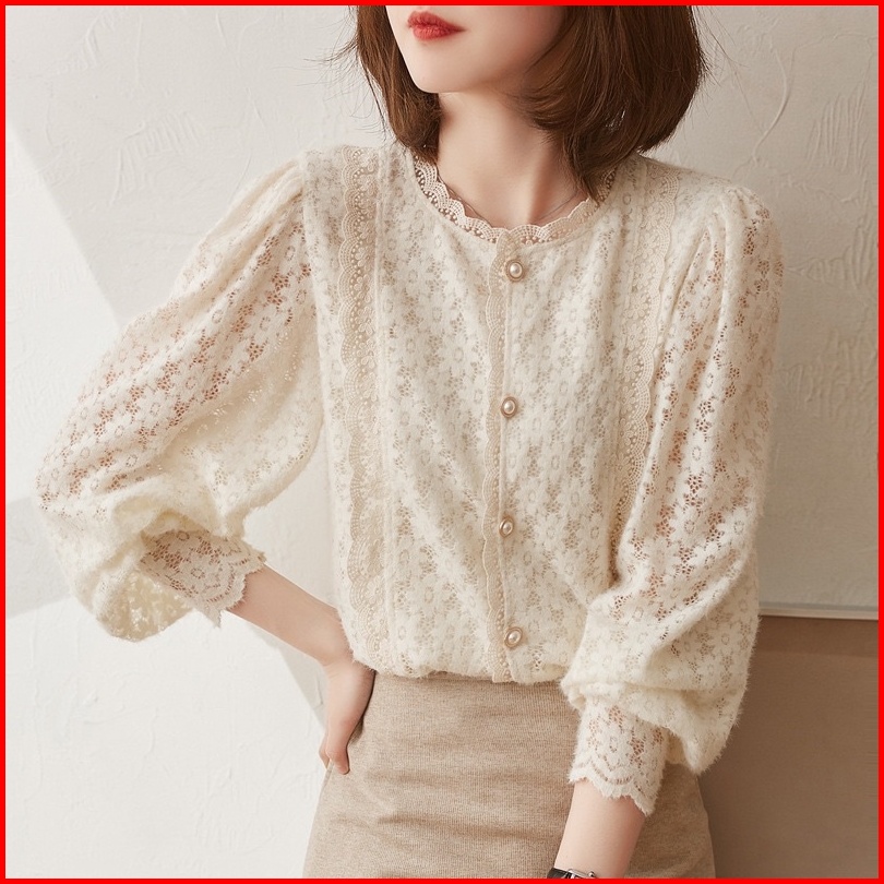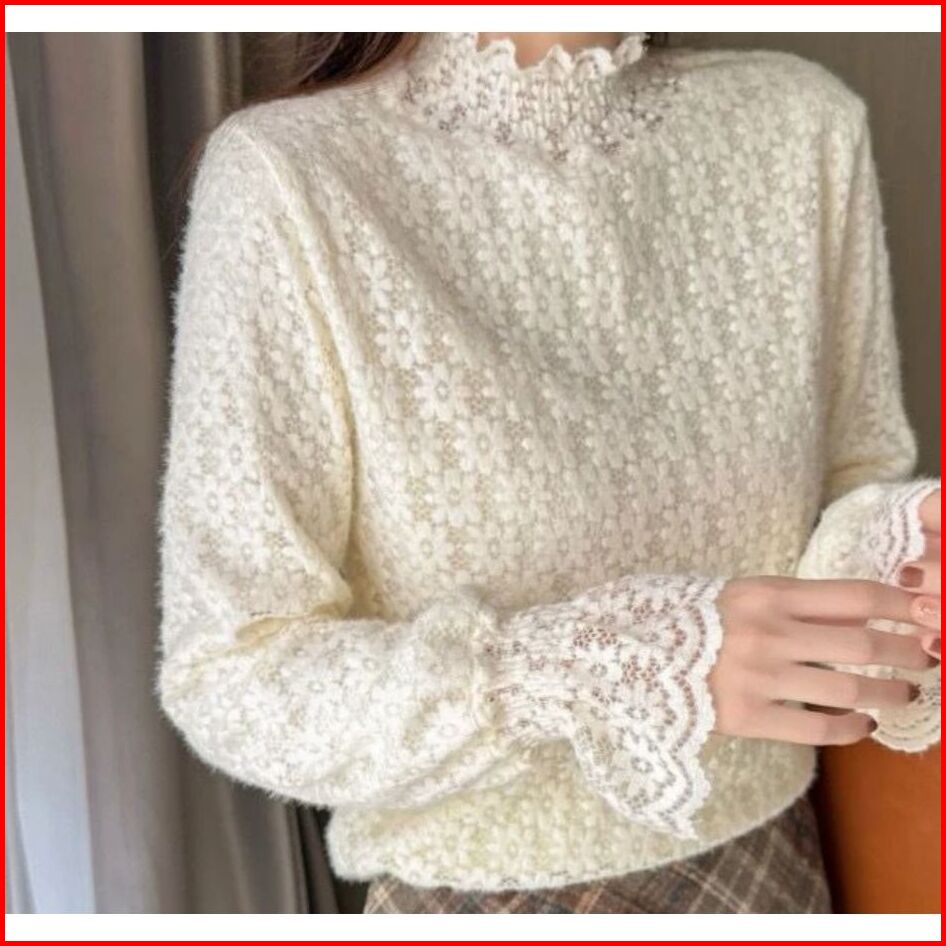 Kiwi Numa Blouse Lengan Panjang Kemeja Wanita Renda Hijab Friendly