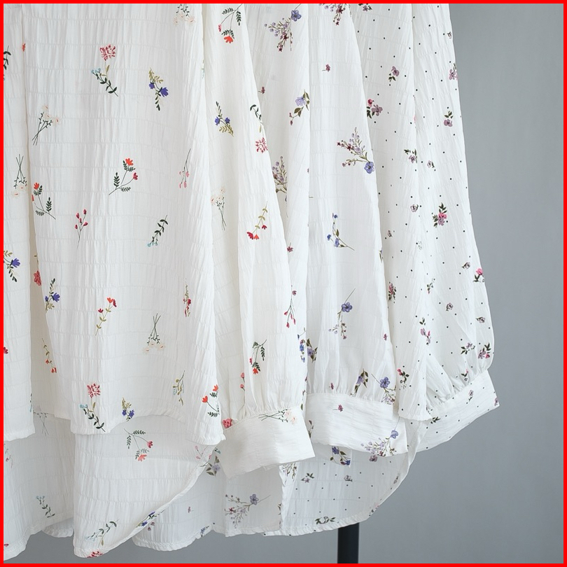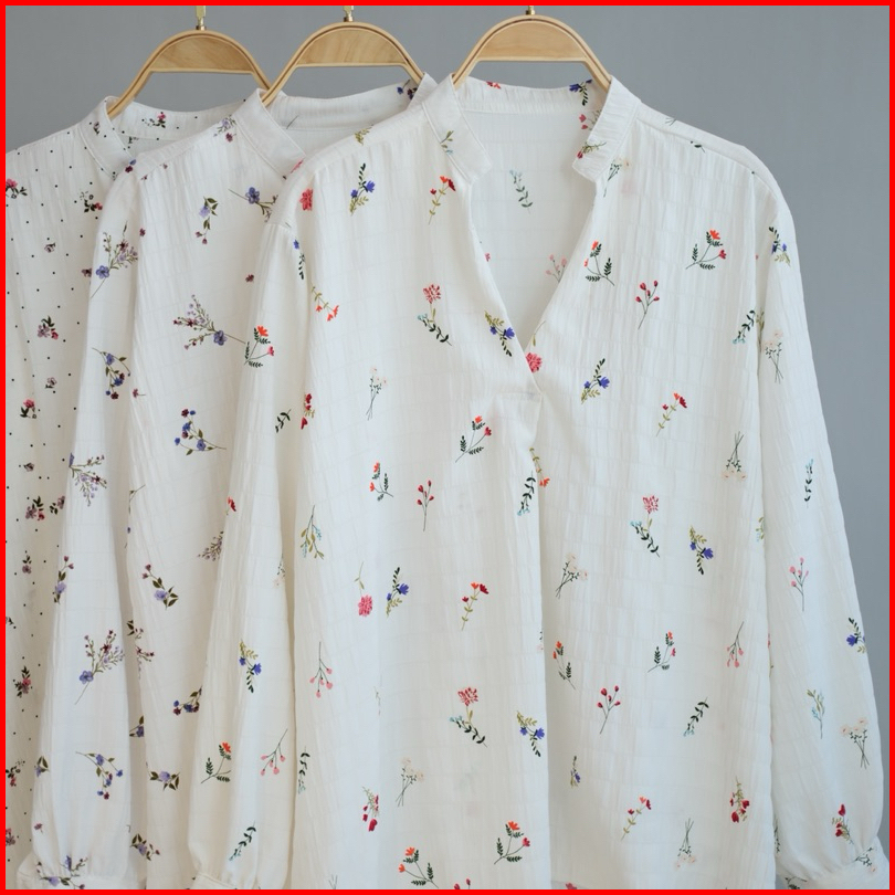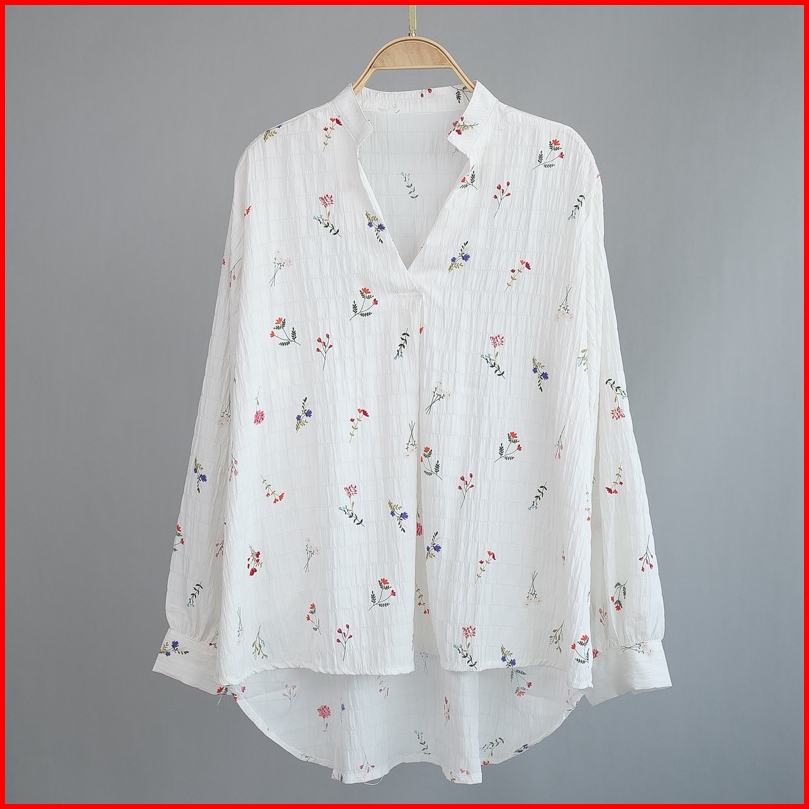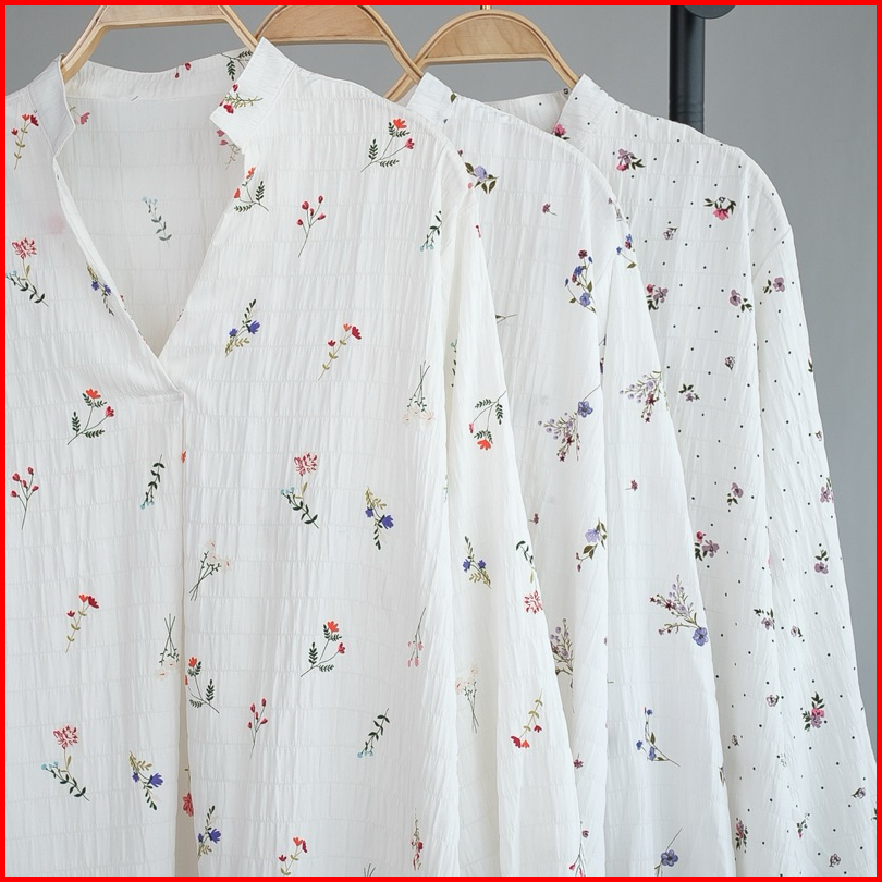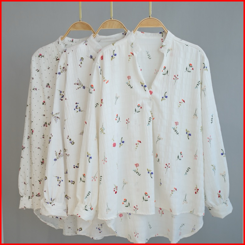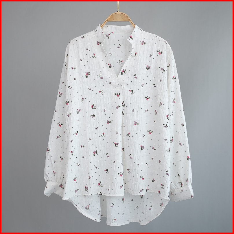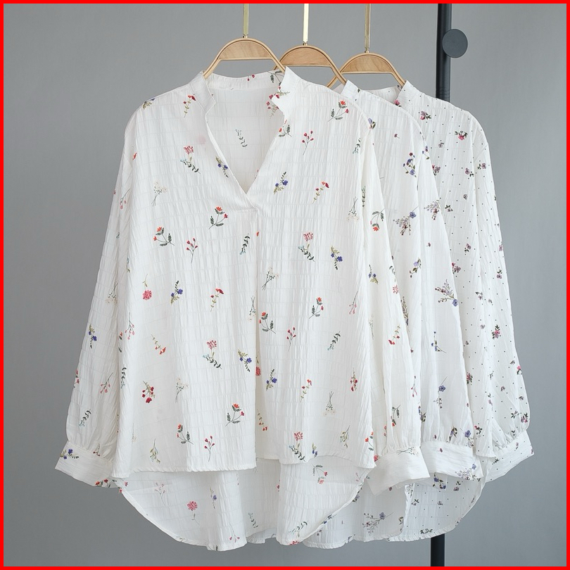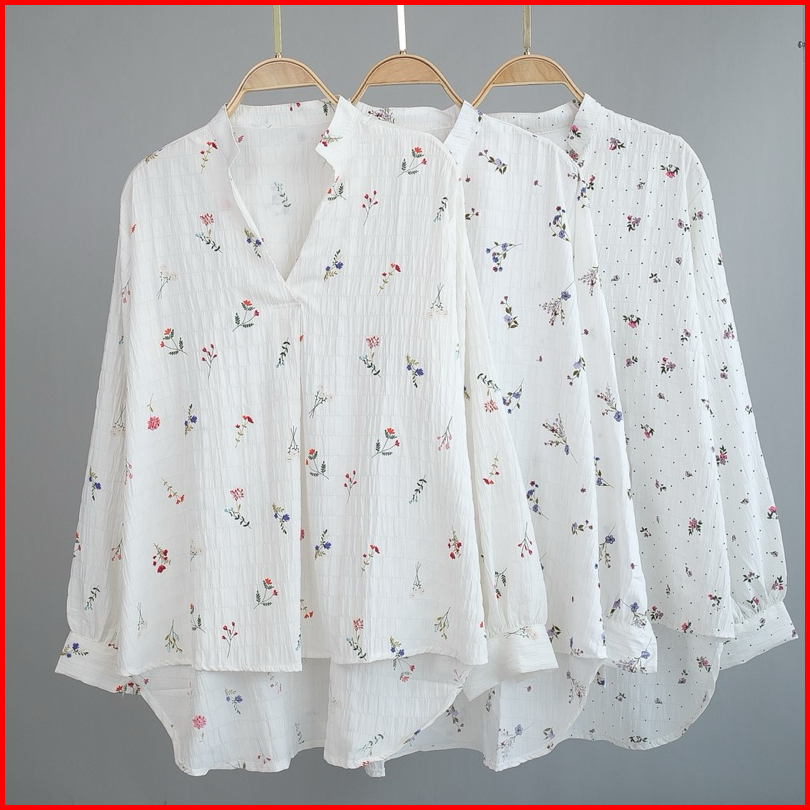 Kemeja Blouse Bunga Top Fashion Atasan Wanita Lengan Panjang Bahan Catton Krinkle Motif