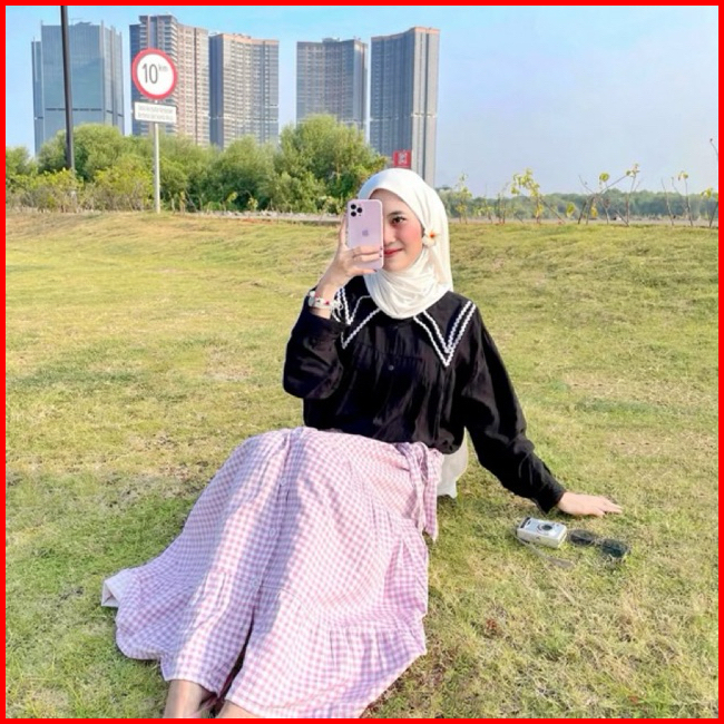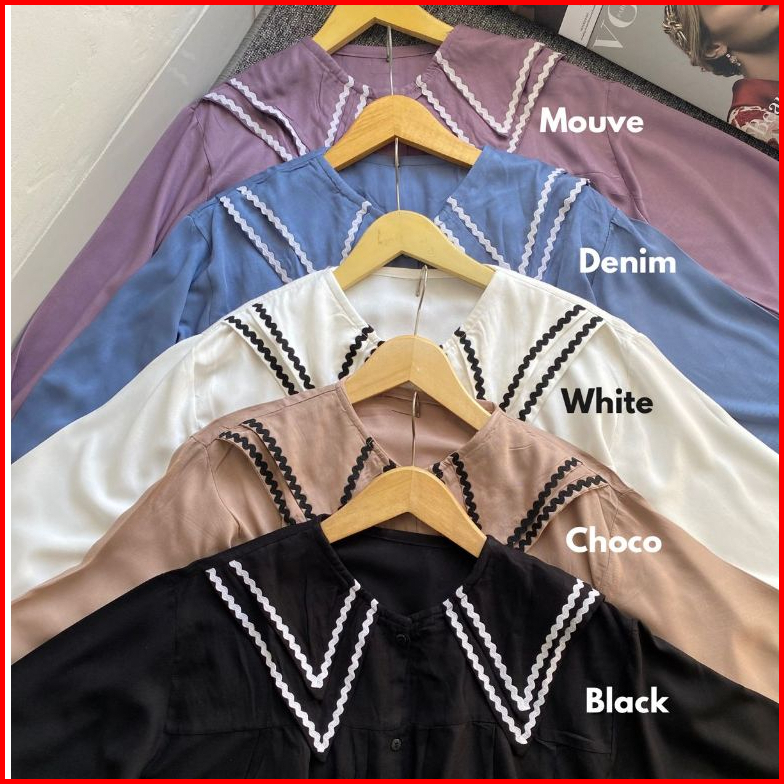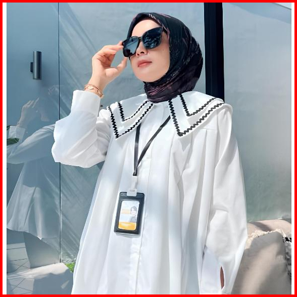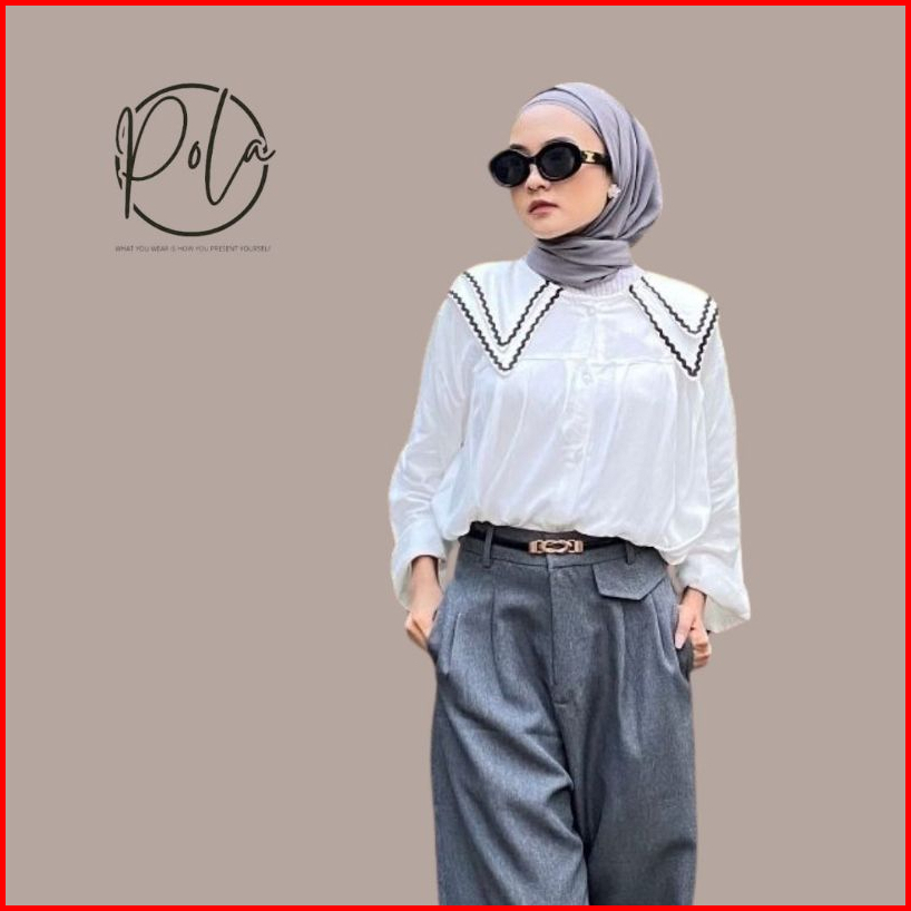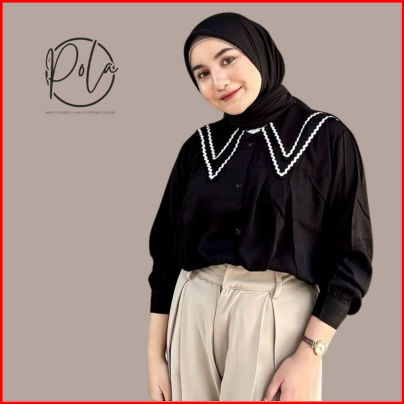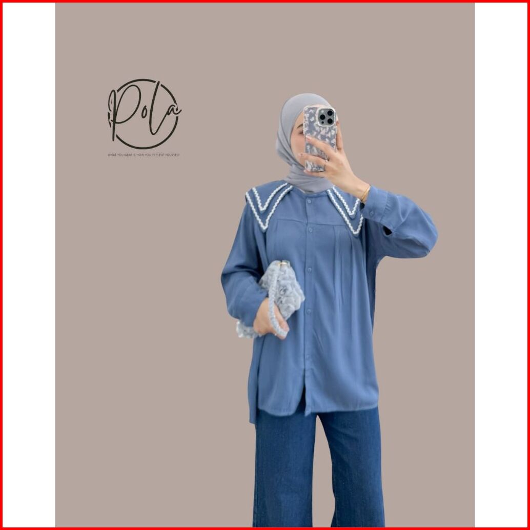Pola Wear Gladys Blouse Kemeja Wanita Oversize Kerah Renda Atasan Jumbo Rayon Twill