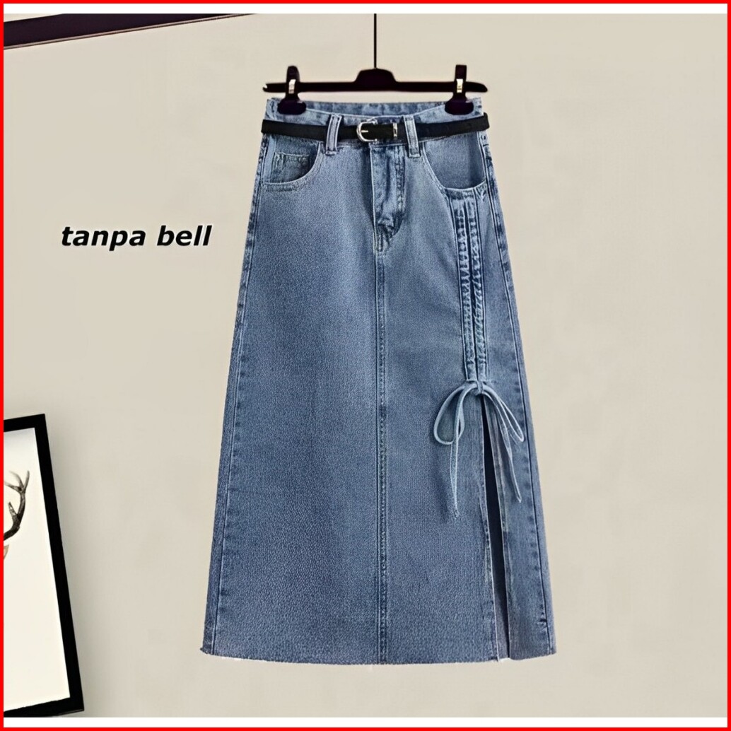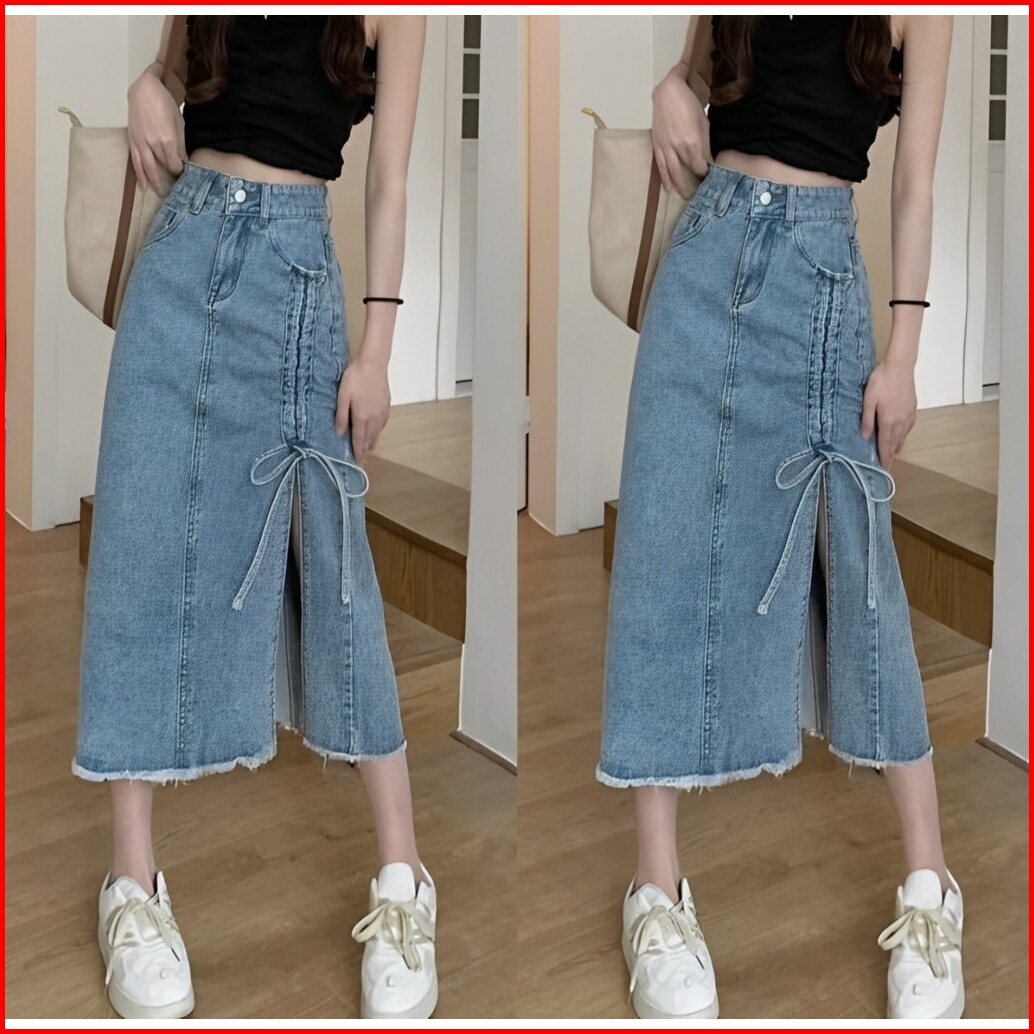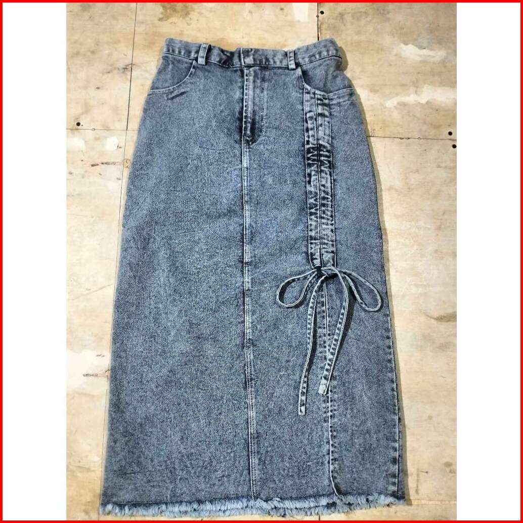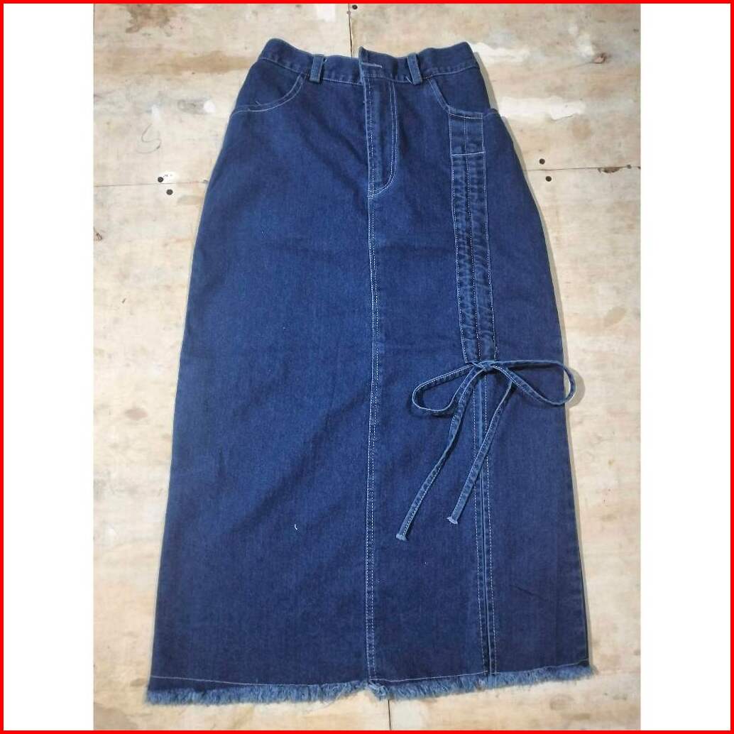 Nikita Rok Skirt Jeans Serut Korean Style Midi Belah Casual Kekinian