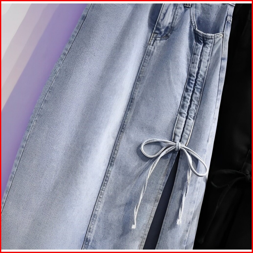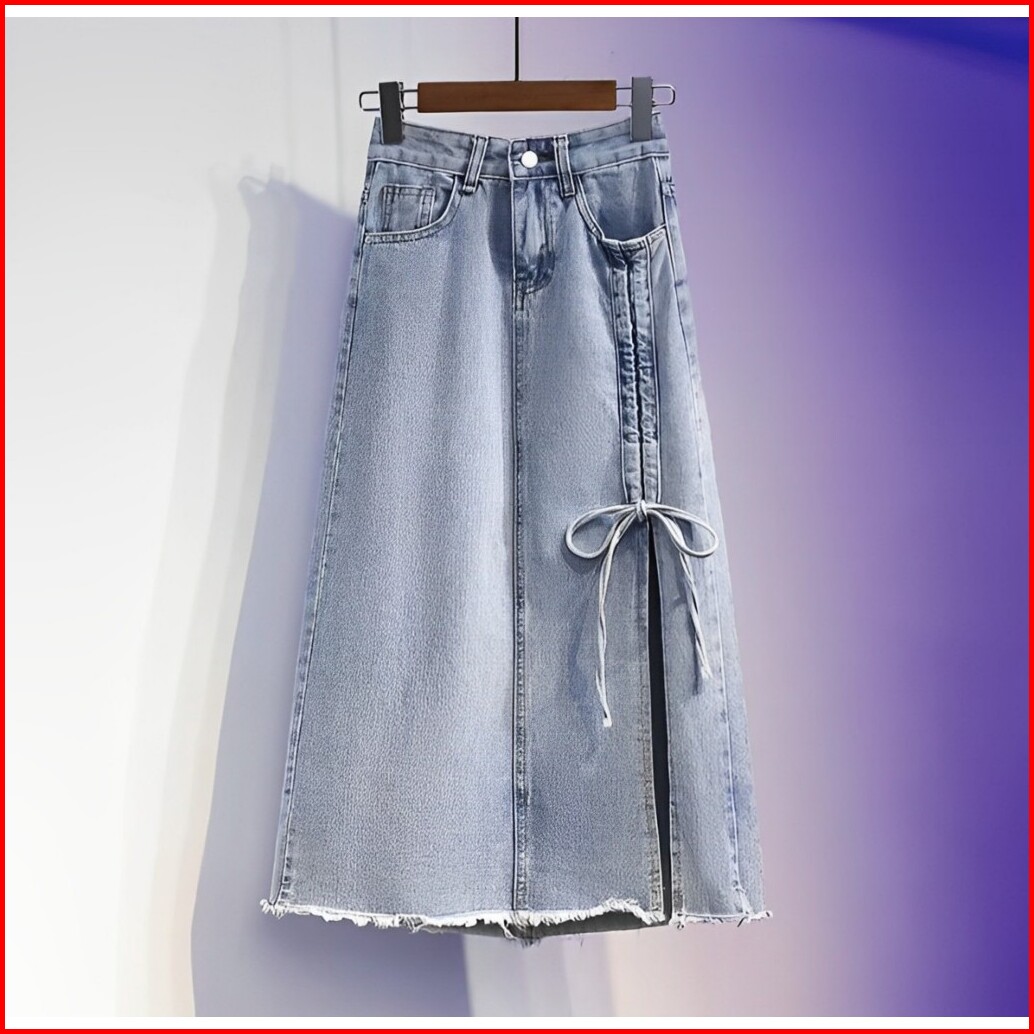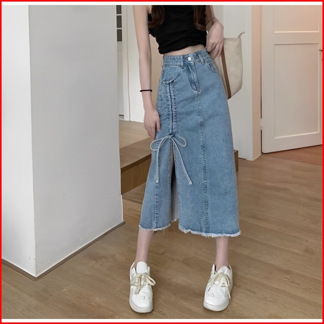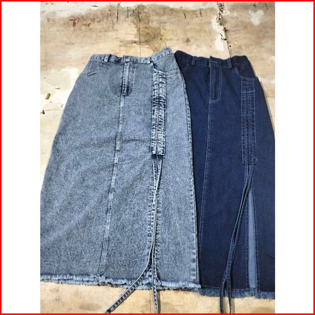 Nikita Rok Skirt Jeans Serut Korean Style Midi Belah Casual Kekinian