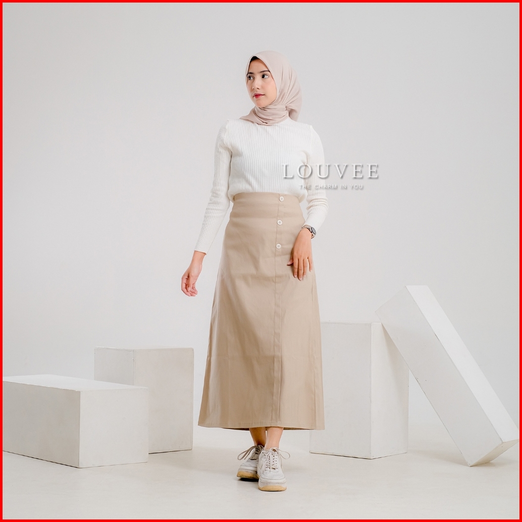 Louvee - Luna Skirt Rok Panjang Bengalin Wanita Semi A-line Karet Standar