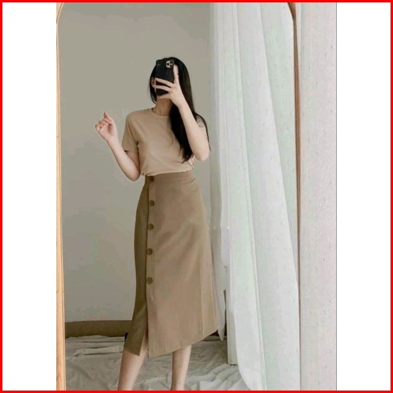 Skirt In Jae Midi Korean Style Rok Full Kancing Samping
