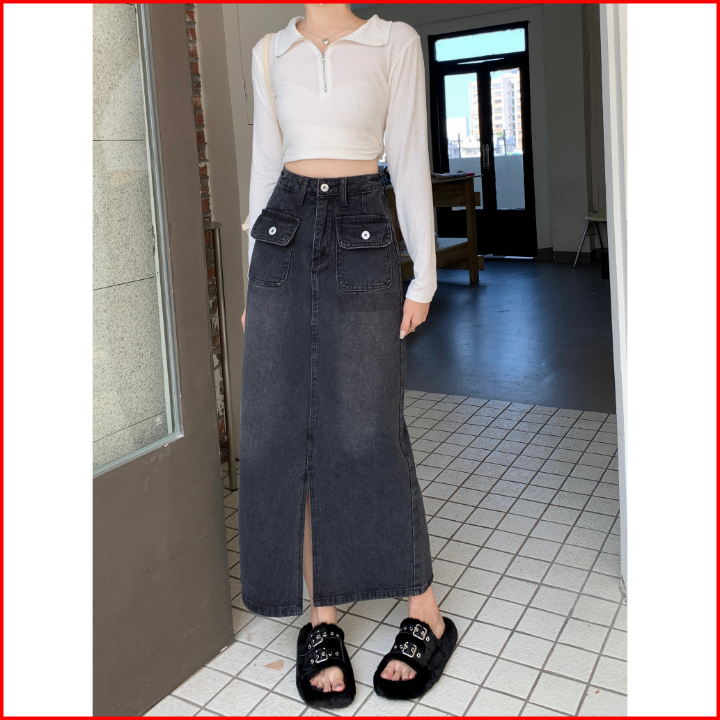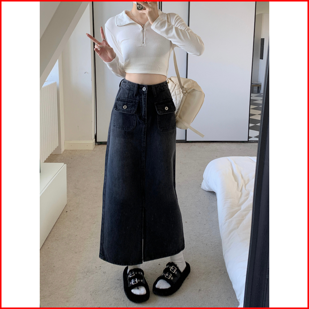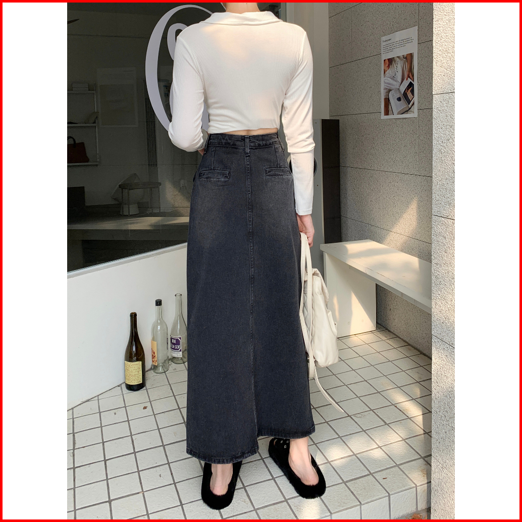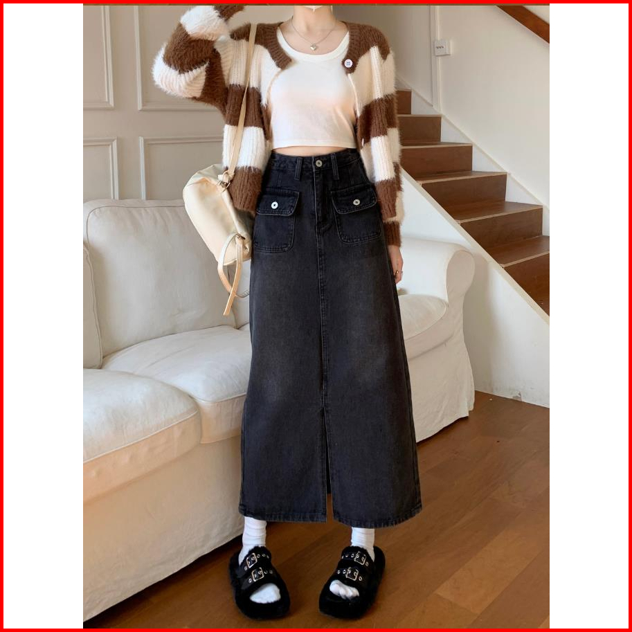 Rok Denim Wanita Korean Style Rok Jeans Panjang Premium Vintage A-line Skirt Highwaist Rok Jeans