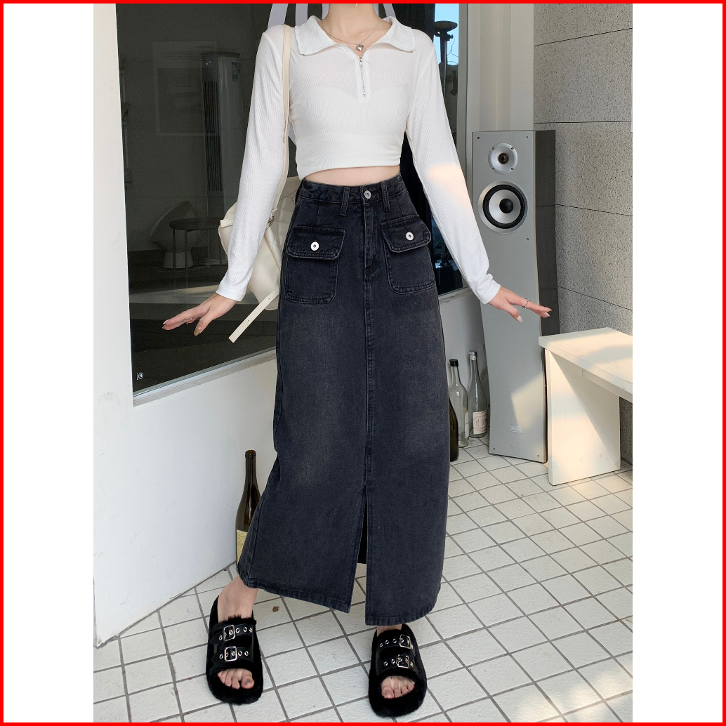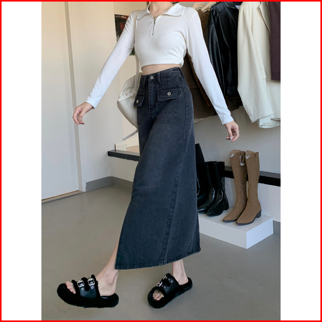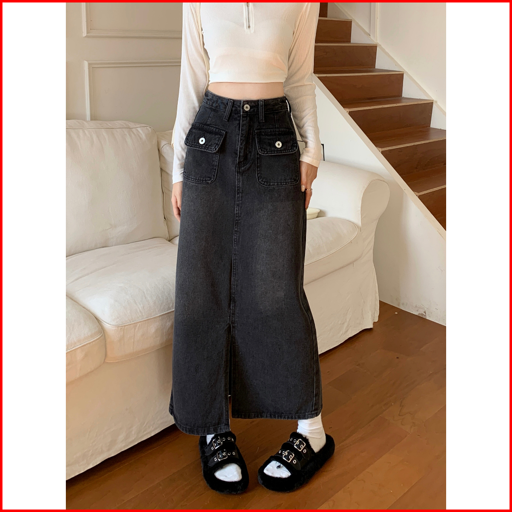 Rok Denim Wanita Korean Style Rok Jeans Panjang Premium Vintage A-line Skirt Highwaist Rok Jeans