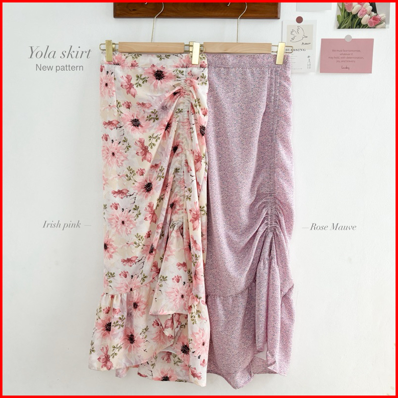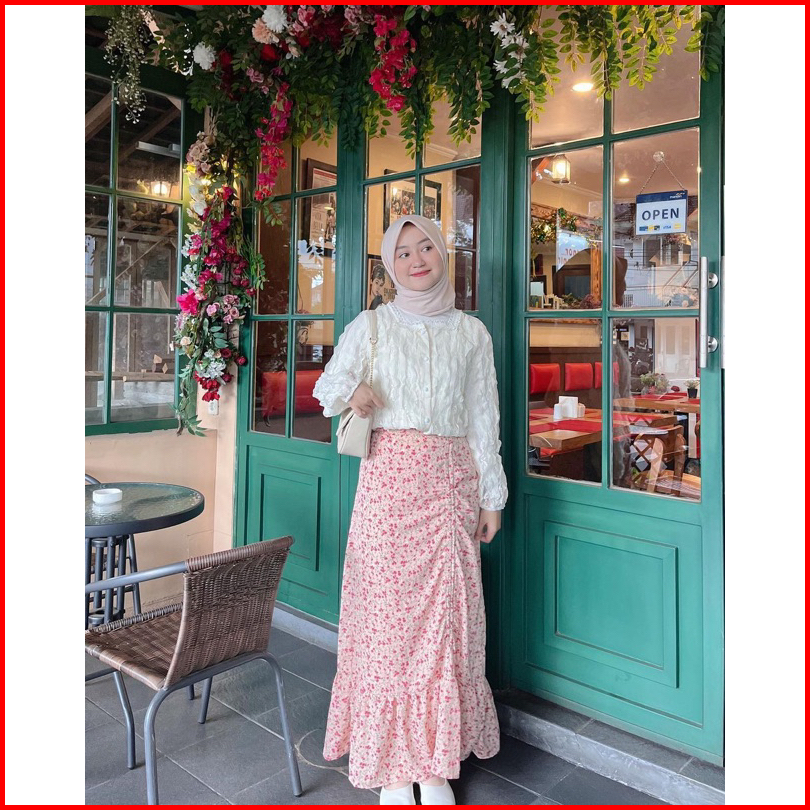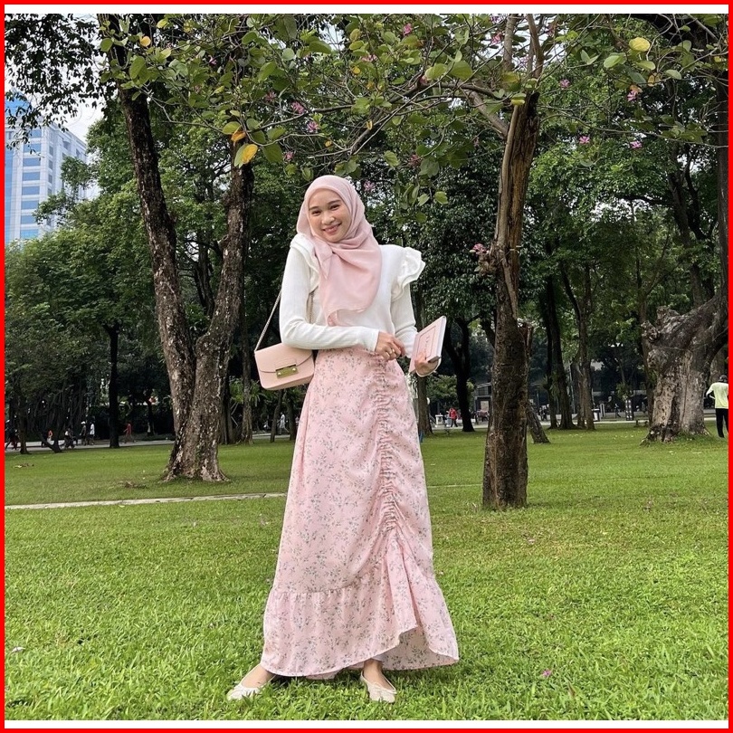 Ghamara Yola Skirt Rok Serut Midi Skirt Rok Motif