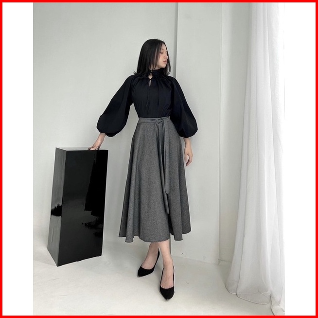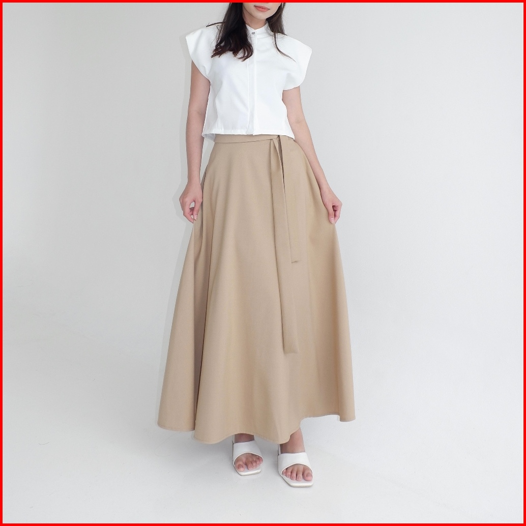 Gracias Label - Peony Skirt - Rok Midi - Rok Maxi Wanita - Flare Skirt - Semi Wool Fabric