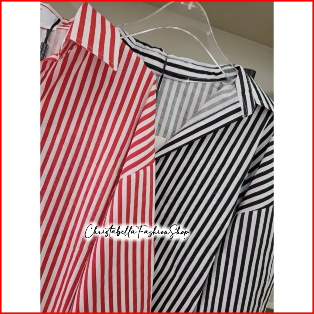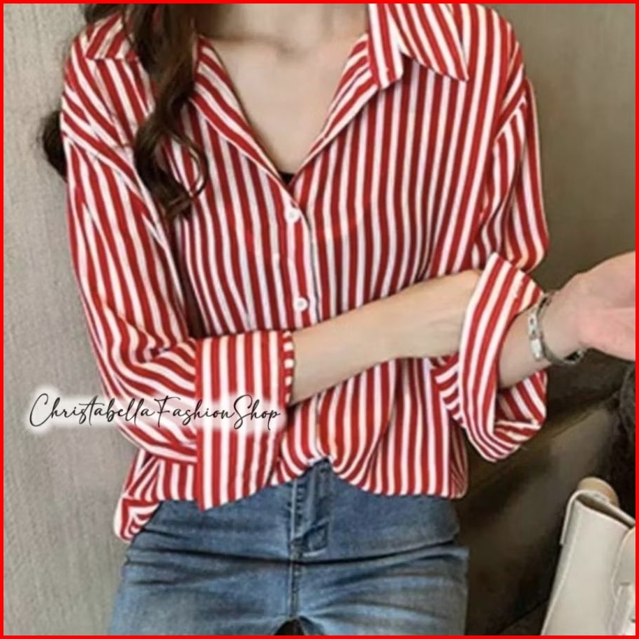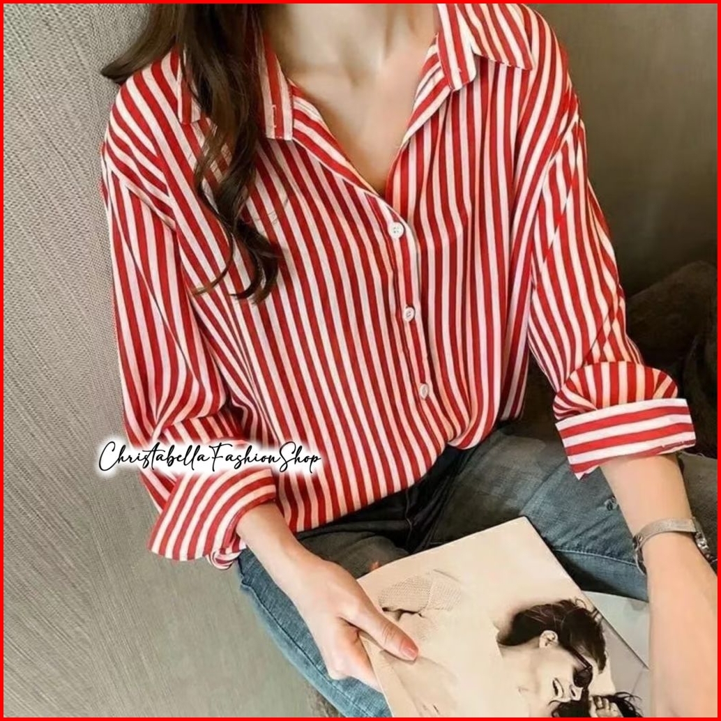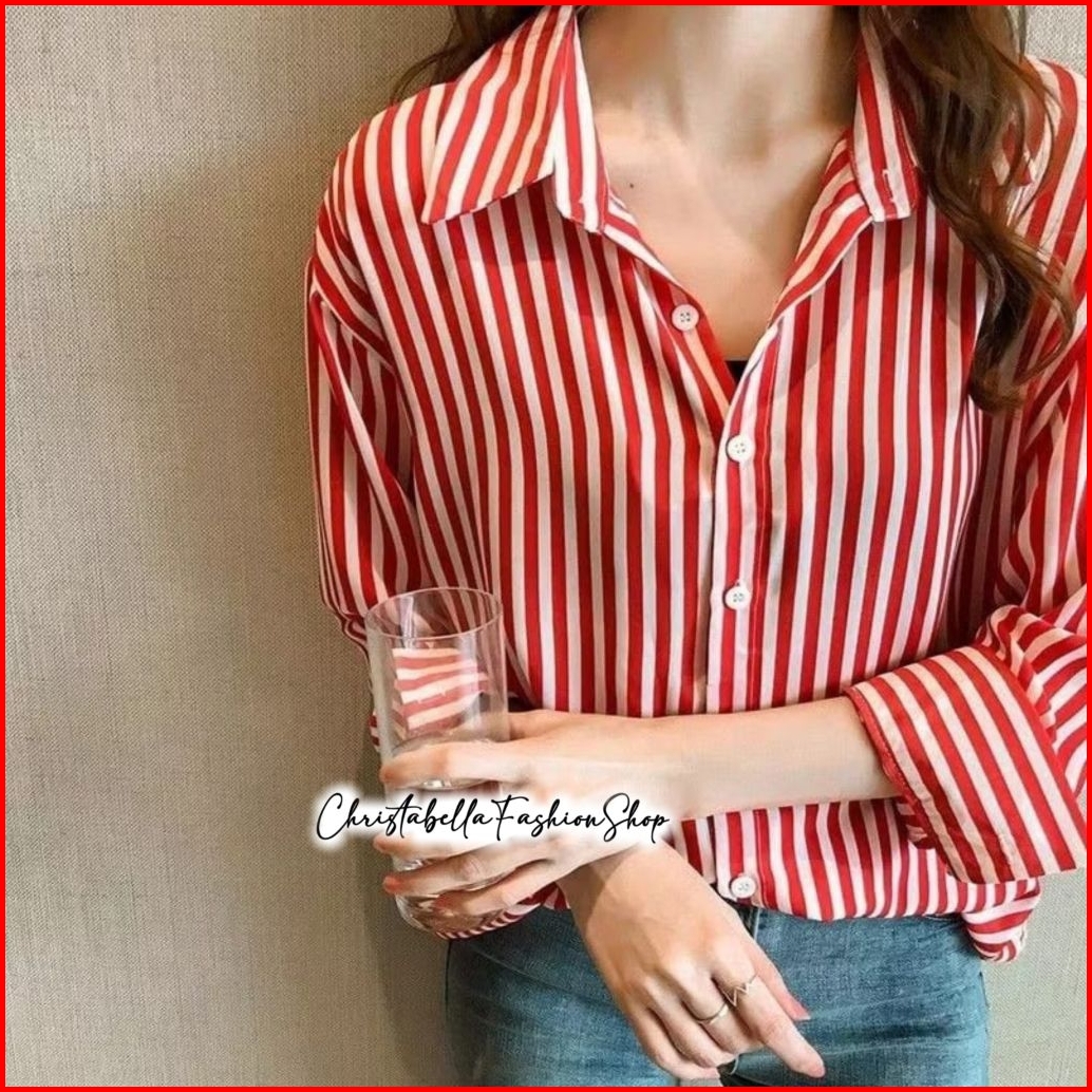 Kemeja Salur Wanita Julia Top Wanita Atasan Stripe Salur Garis Merah Putih 17agustus Kemerdekaan