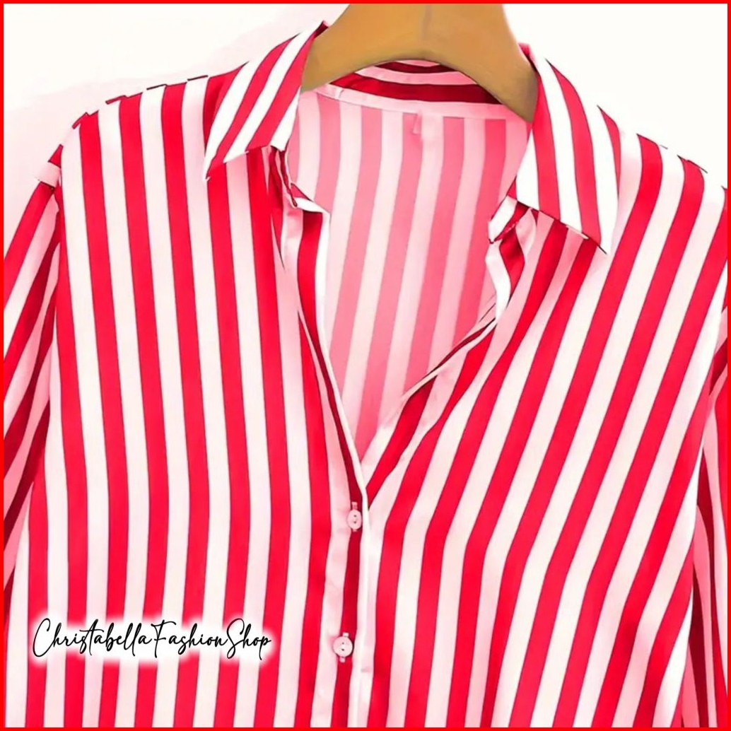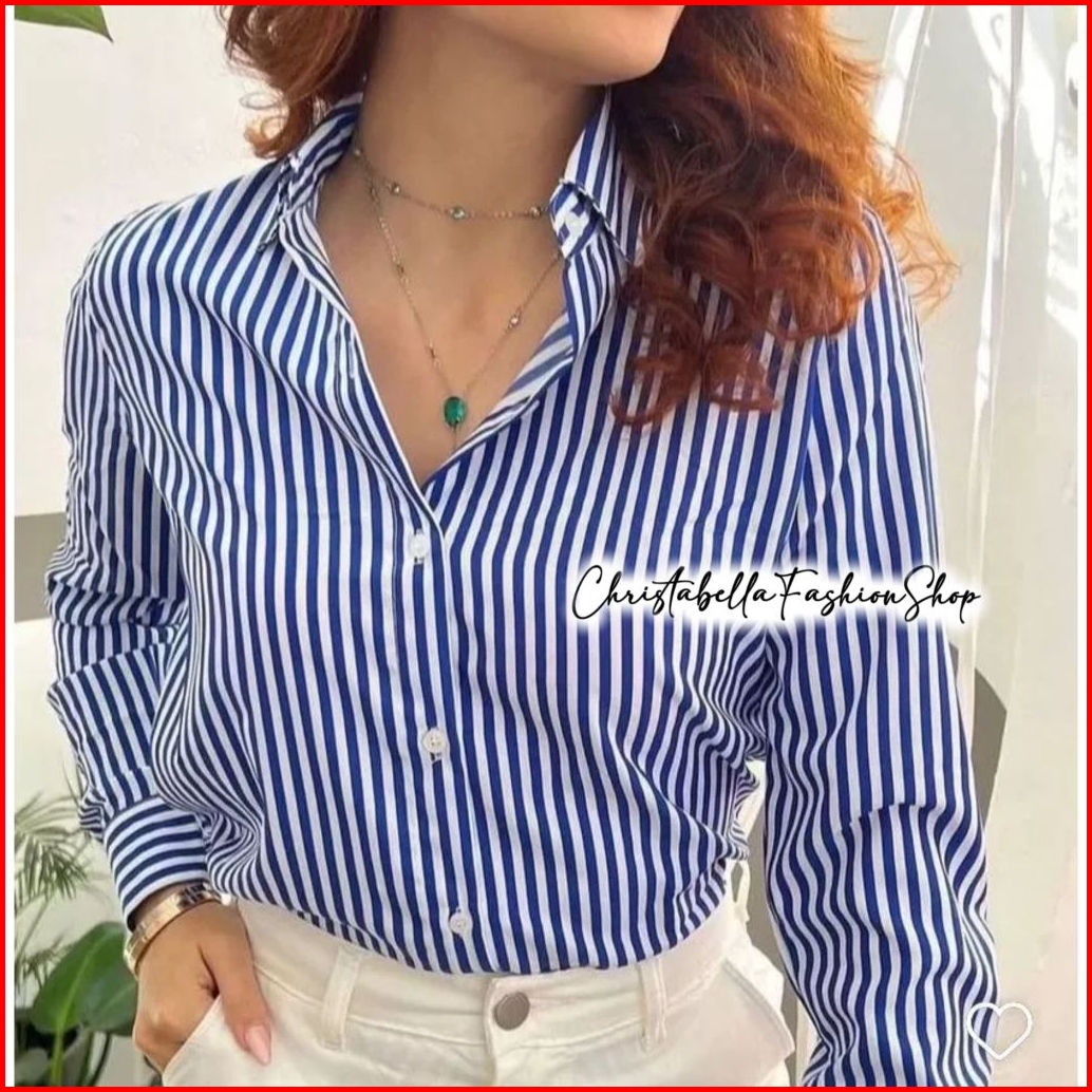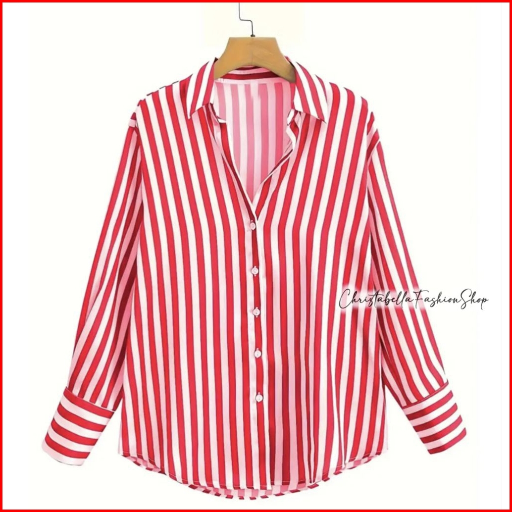 Kemeja Salur Wanita Julia Top Wanita Atasan Stripe Salur Garis Merah Putih 17agustus Kemerdekaan