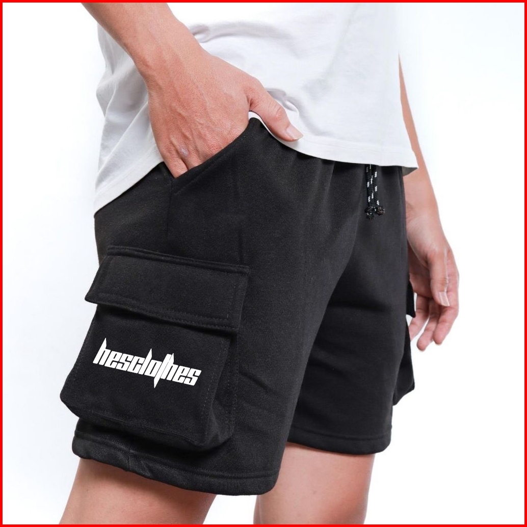 Hesclothes - Celana Cargo Pendek Selutut Kualitas Premium Grade A Bahan Fleece Tebal Lembut
