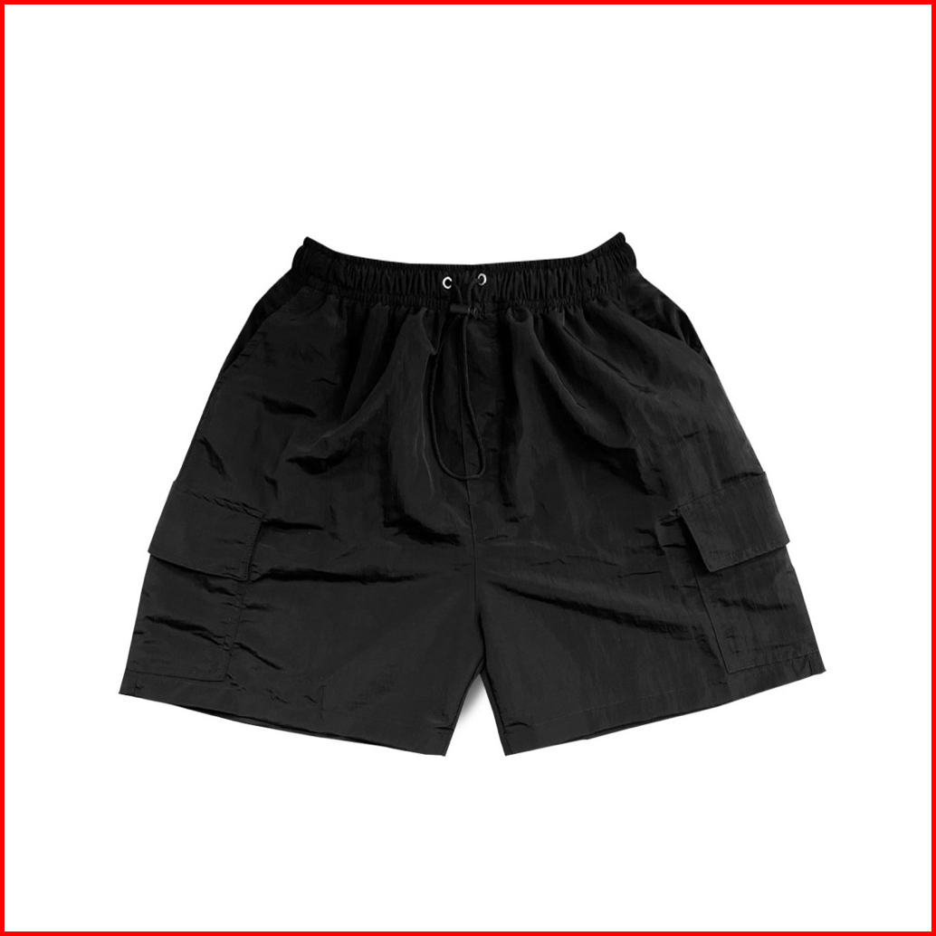 Celana Pendek Cargo Short Pants Nylon Crinkle Hitam Nubies