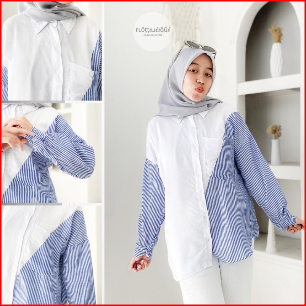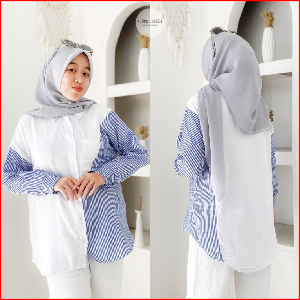 Bertha Shirt - Flottilicious Baju Wanita Katun Rayon Blouse Murah Kemeja Hits Korean Style Fashion Outfit Ootd Hijab