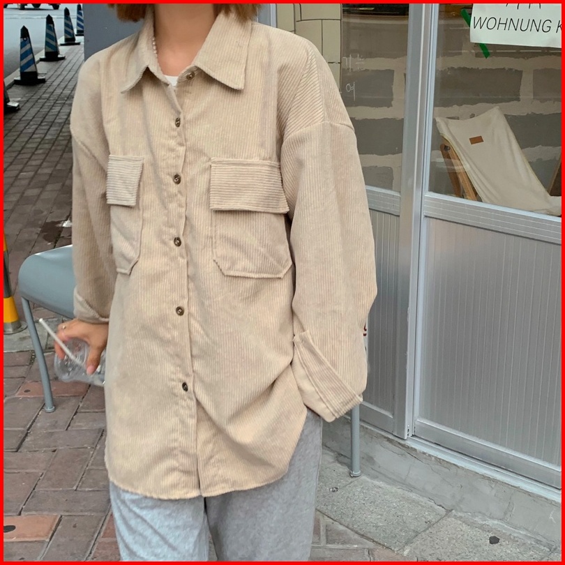 Xiaozhainv Korean Style Kemeja Korduroi Atasan Wanita Hw0003
