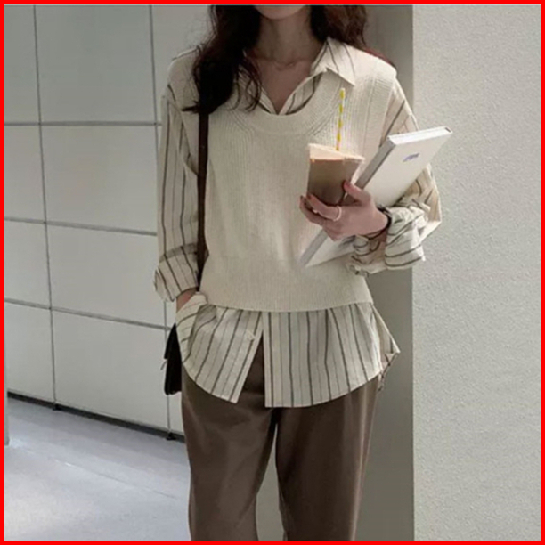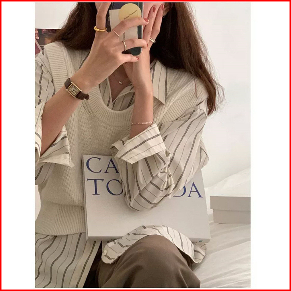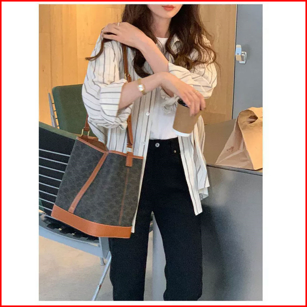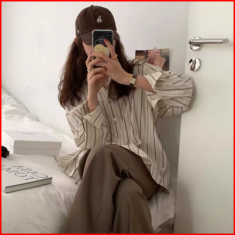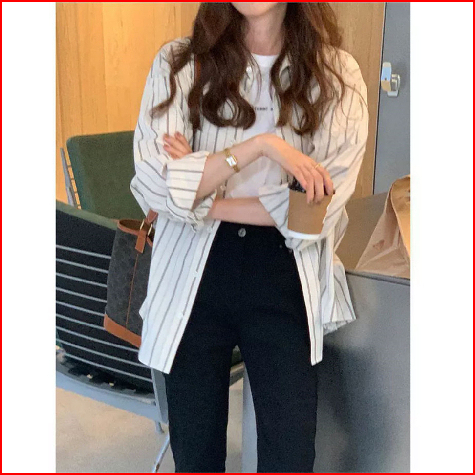 Kemeja Wanita Lengan Panjang Kekinian Stripe Causual Korean Style Import Blouse Wanita Baju Atasan Wanita