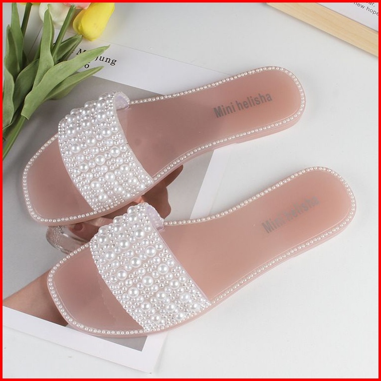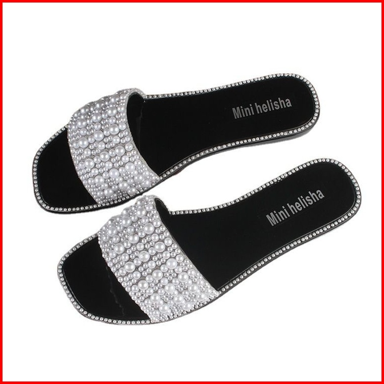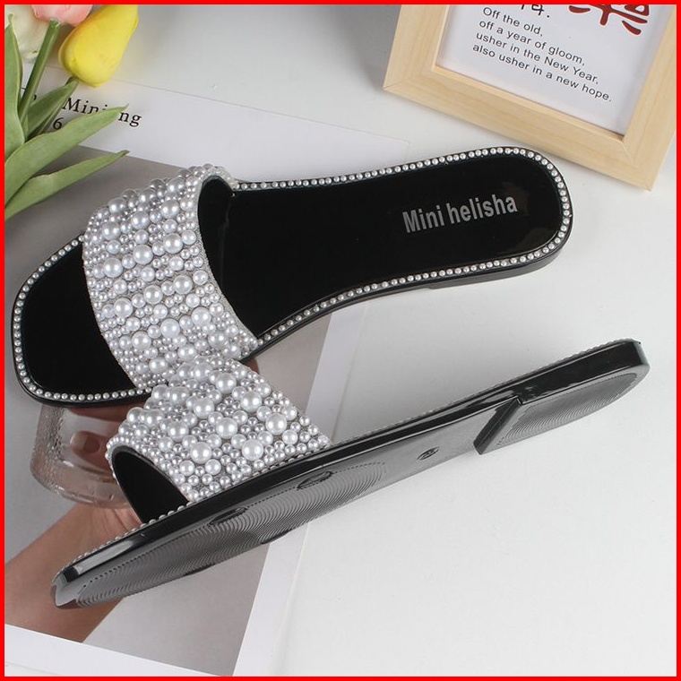 Sandal Flat Slip On Mutiara Sandal Wanita Impor Manik Manik