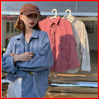 Korean Style Lengan Panjang Corduroy Shirt Atasanatasan Wanita Jaket Korduroi Pendek Retro Wanita Warna Solid Atasan Kor