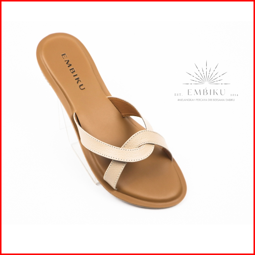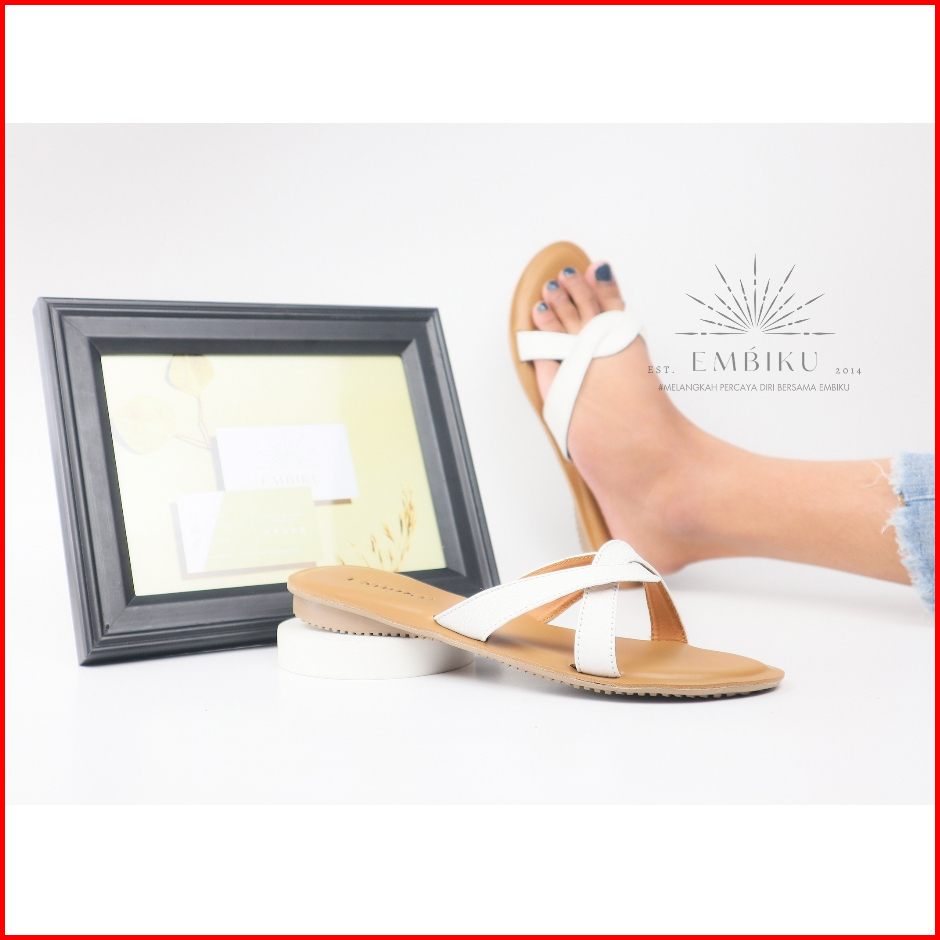 Embiku Sandal Flat Teplek Kulit Wanita Sandal Kulit Garut Wanita - Alana