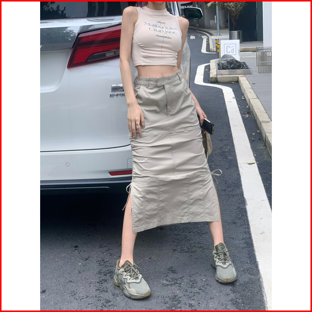 Rok Midi A-line Celana Kulot Wanita Fashion High Waist Skirt Korea Style Baru Wanita Kekinian